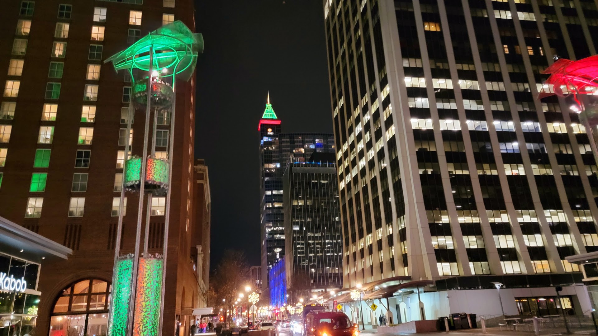 A friend and I went to dinner at Jimmy V's last night before a show at the Duke Energy Center for the Performing Arts. When we walked in the entrance off of Fayetteville Street, we weren't sure where the hostess desk was - there were a lot of people standing around the bar area, and after weaving through some people we found the hostess and she took us to our table. The people who were standing around the bar area were there just for the bar, and there were enough people that they had to gather around the entrance, which meant there were people standing around/near our table for some of the meal. It's a little annoying, but it wasn't the end of the world.