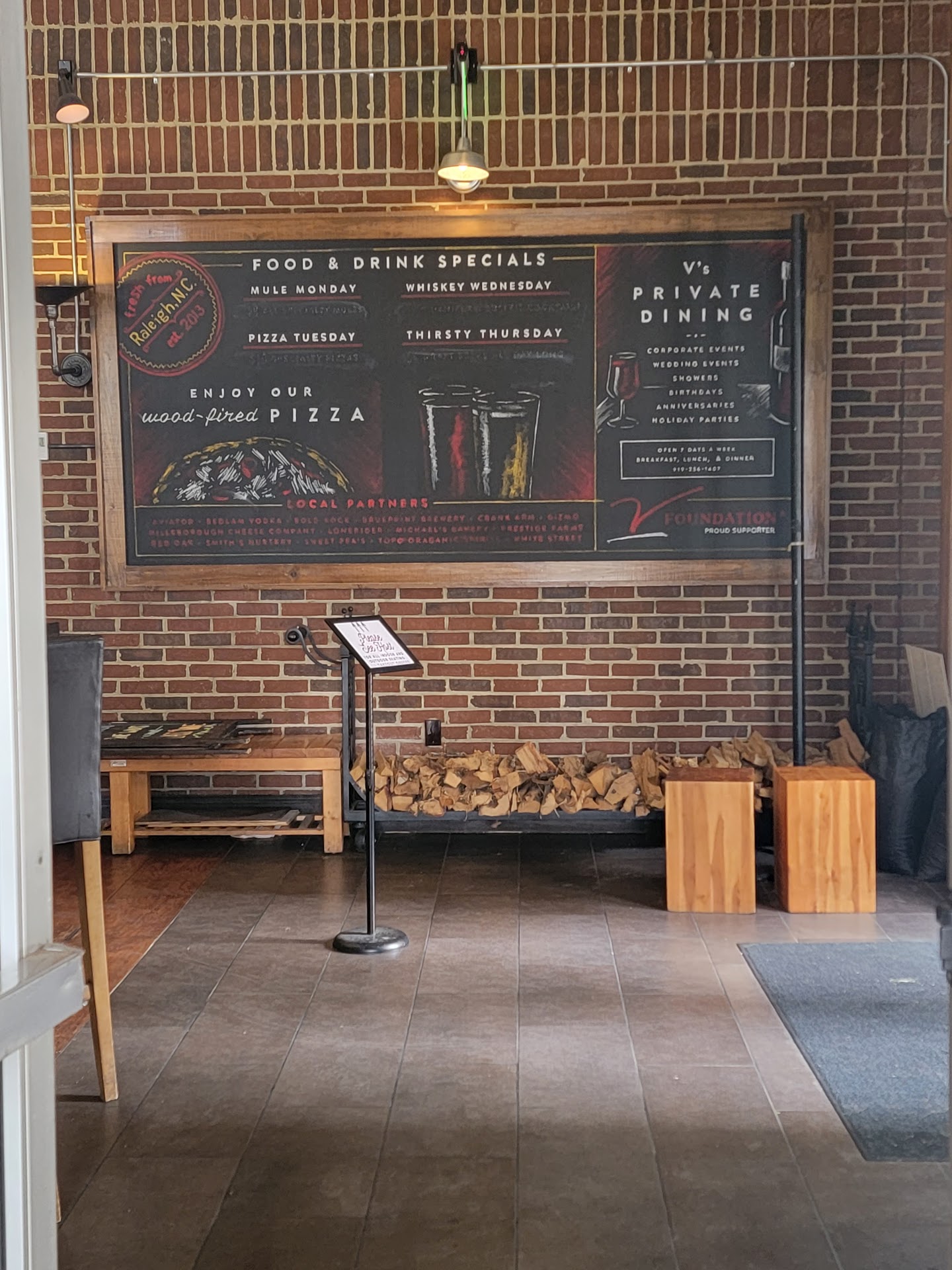 Read moreMy experience was so/so. I loved the atmosphere of the restaurant. Classy yet comfortable. & Very spacious. They did however have a low A (94), but the place looked clean. The menu was over priced to say the least. I was also a little disappointed that the menu was just a printed sheet of paper that someone made copies of from their computer. There wasn't a wide variety of choices entree wise either. It was one of those, whatcha see is whatcha get type of places. I'm suspecting that they are so raved about in the Raleigh area because of it's well known influence for NCSU deceased coach Jimmy V. Hence the name on the building. They also donate a percentage of their profit to a foundation charity made in his honor, so thats nice too. Service was ok, our server Rick was accommodating & polite as well. I ordered the Spaghetti & meatballs for $18, which is definitely a reach because pasta should never go over $15 in my opinion. I have to say, I was not pleased. Meatballs we're good but the sauce was bland & soupy like. Lacked spice & seasoning. Literally tasted like Campbell's tomato soup. My Company ordered pizza & calamari. They LOVED the pizza, weren't huge fans of the squid. I had a cocktail, 'Sugar spice berry berry nice mule' to be exact. Not much liquor in it, ginger beer was flat. No fruits or garnish. My in laws ordered Mai Tais, a very easy, typical fruit drink served everywhere... It was missing fruit, grendine, & tasted like a screwdriver. So maybe the bartender needs some training or a cheat sheet behind the bar. That pretty much wraps up my experience at this establishment, I give it a C+. Won't be returning but not completely regretting giving it a try. If you found this helpful...