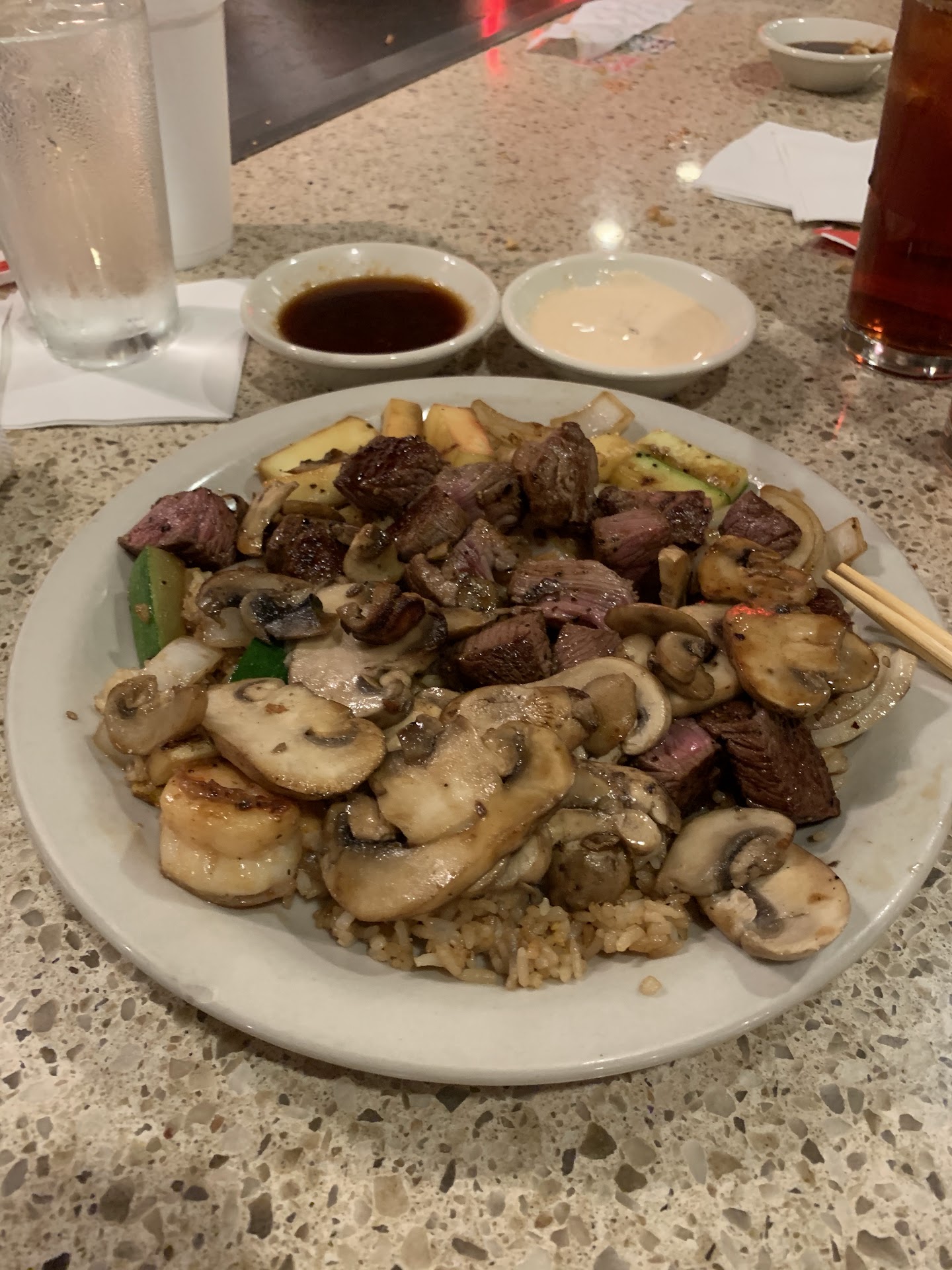 Read moreThe chef, server and bartender were fantastic this past visit. The host stand and manager lend to a less than desireable experience. We have had the bartender, Rob, on a few occassions and it has always been great service when we sit with him. He is the reason for the 3-star rating quite honestly. The hosts are rude and inattentive. The manager lacks any compassion or empathy related to negative feedback. Our most recent visit is a perfect example of the theme to all of our experiences. At 8 pm, we were told grill-side dining was an hour wait. There were numerous open grills. We were also told we could not wait in the lobby, but could walk around the mall (this was not an option as the mall was closed). We were also told to be back before 9 pm or we would not be seated, clearly a device to attempt to make us dine elsewhere. To avoid issue we sat at the bar and had sushi, which was great. No complaints aside from a lack of scotch to choose from. We were text our table confirmation at roughly 8:50pm, approached the host stand which was glued to their phones. I had to interrupt them to let them know we had received the text. Our server at grill-side was nice, polite and attentive despitre the proximity to closing time and the chef cooked all the food properly and quickly even going as far as switching out a steak for us (filet for ribeye) and making lemon butter for our lobster tail, a nice touch not seen at Kanki previously. This location is far closer than Durham, but overall the trip out to Durham never fails. Our experience was a step in the right direction and we would definitely sit at the bar to get sushi and drinks with Rob, but the overall experience needs some adjustments (mainly at the host stand) to frequent this location...