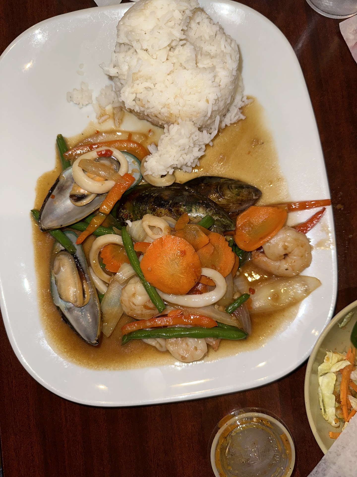 Read moreWhat a wonderful experience. We came on a Saturday evening at 6 for the first time. The waitress was probably the most friendly server we've ever had. We had our toddler with us which is sometimes an anxious experience and she was so sweet to him. It was a small restaurant with many people but they were able to still seat us right away. Everyone who came in while we were there was able to be seated right away. The menu had many options, I went with the traditional pad Thai. I believe the default comes with shrimp but I asked for chicken instead. Hubby got the beef panang dish. While they worked on the entrees they brought our salads with a delicious ginger dressing (there's more dressing options) and fried noodles. The fried noodles came with a sweet and sour sauce that was divine. I had to stop myself from eating too many because I was already getting full before our entrees came. The pad Thai was very good! It came with a sliced lemon. It was perfectly flavored with the right amount of sauce, not dry. It was a big portion and I had to bring home leftovers that I can't wait to demolish. The beef panang dish was amazing. The flavor really surprised me with how great it was and it was saucy which is a plus. The waitress came and checked on our toddler a few times and actually helped him eat his vegetables. He got a chicken dish with rice, broccoli, and carrots. He ate almost his whole plate- why can't he do that at home?! I can't wait to go back. We came for my birthday dinner and I truly picked the right place. If that waitress ever sees this-- thank...