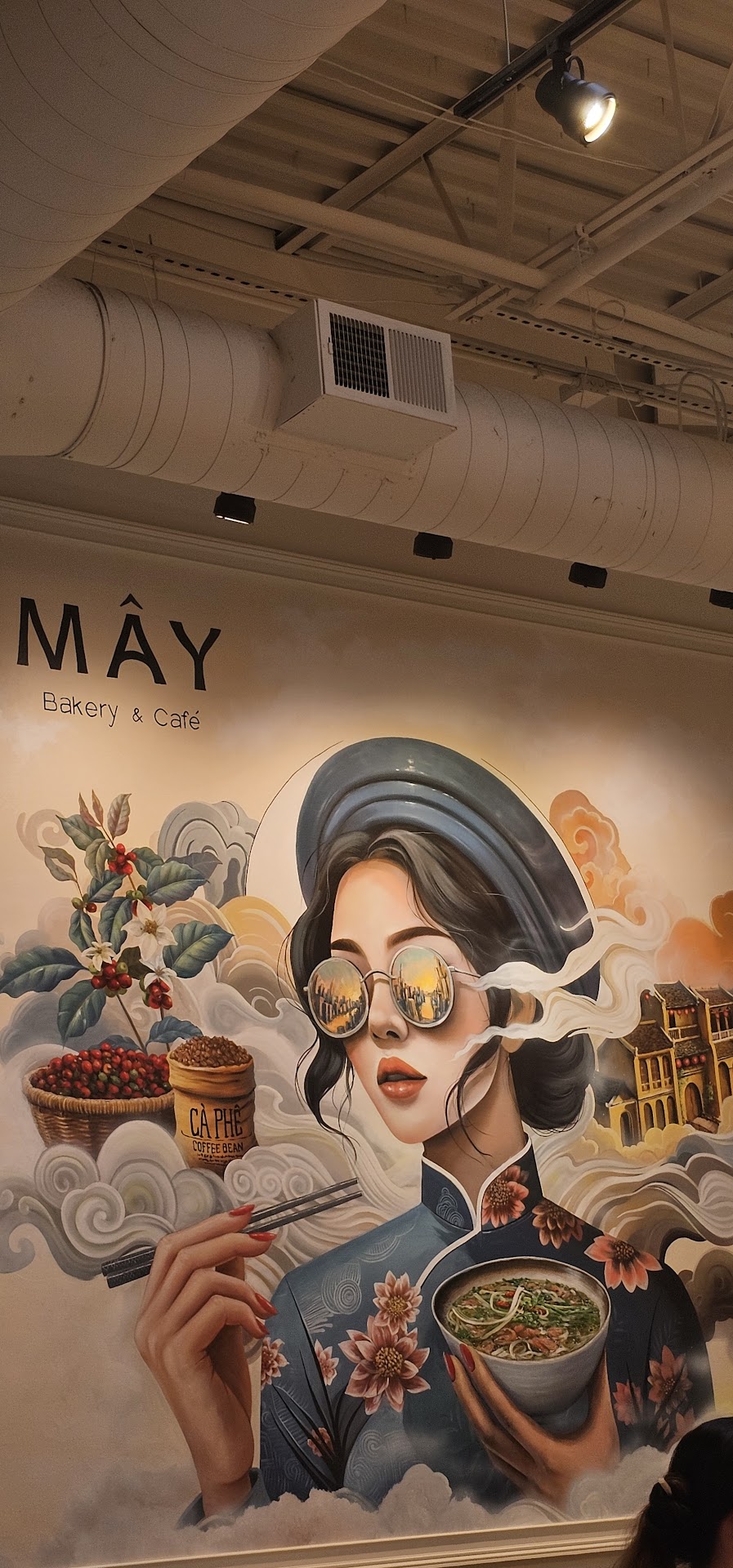 With added tip and tax are charge came out as $89.67 for an order for four people, sadly we did not end up getting our Grilled Pork Chop & Broken Rice / Com Tam after a wait of 30 minutes, we received a apology from the most responsible employee there was in that building with a printed receipt. ( ^ The problem could have been fixed with communication from staff to customers about the delay ) -The food wasn't anything too special, and nothing was notably bad other than prices for the portions which criticisms can be taken lightly because entrees wasn't supposed to be the main focus. Although I suggest against ordering the traditional pho as it lacked any depth of flavor. The drinks were actually pretty good other than the fact we waited 10 minutes to down the drinks in a solid 2 minutes because of the overwhelming amount of ice. Staff seemed disorganized and unprepared. At the initial order we never received a receipt, which bothered us immensely due to the high price of our order, we only ended up addressing the fact to wait for staff after checking in our food, and when we received a refund and copy of the receipt. -All of the servers seemed to have a difficulty figuring out what customers had ordered, the number system works fine if it's picked up but the problems arise since the servers come up to multiple tables asking if this order belongs to them which can lead to potential mix-ups. ( Observed concern ) For the time we were there a group of waiters were seemingly chatting in the back and not really checking in other customers or acting as hostess which I do not know if that was intentional. Another problem with layout is that the chairs to the side of the place do not grant much functionality in use although comfortable. Menus should be tweaked while browsing. It was a shock that the items were priced so high, especially "Lobster Pho" , a very unexpected dish to be on the menu for $85 at a "Bakery and Cafe". Positives: The place has an overwhelmingly nice atmosphere, with Vietnamese music playing in the background. Great decor! ( although I have a sneaking suspicion that the mural was created but AI but that's a theory not fact) The furniture is tasteful and pretty. Everything was very clean and the flowers were a nice touch. The staff we spoke to at the very end was understanding and apologetic, for the rest of the staff he seemed to be a shining example of the service that should have been provided. Baristas did a good job! But I was mildly confused by the fact that some were running food when there was definitely other staff who were supposed to. They offer what seems to be different types of deserts daily, which we did not get an order of though they looked quite good with a wide range to creme brulee to flan. Other customers who ordered simple things such as deserts and coffee looked to have an extremely good experience compared to our group of four.