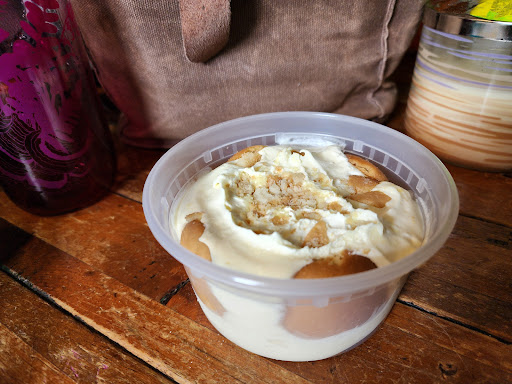Let me tell you, the banana pudding was the absolute worst part of the experience. Not only were there NO bananas in the banana pudding, but the pudding also was not giving pudding. It was giving store-bought whipped cream as it had a very distinct texture and aftertaste. It was a decent serving, but definitely was not what I was expecting and the flavor was not there at all. Literally just tasted like whipped cream and nilla wafers. I didn't finish it... after a couple scoops it was apparent that it did not taste anything like banana pudding and had a very bad aftertaste. As far as the cakes, we ended up getting the cupcake with the cinnamon roll on it, it was subpar to say the least. Very dry and just tasted like regular ol store-bought cake mix, the same for the sliced cake. We went with cookies and cream... it was very thick and had plenty of icing, it was a bit more moist than the cupcake but still tasted store-bought. And there's NOTHING wrong with store-bought but for the price it could at least be fresh. There are also plenty things you can add to box mix to make it better yet the selections tasted very generic. Spent $20 on (1) cupcake, (1) slice of cake, and (1) banana pudding. I am NOT listening to TikTok...