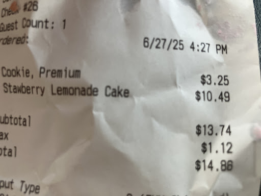 Read moreI was ready to love this local bakery. It looked cute and drew me in while I was waiting for my food at the Korean restaurant nearby. Unfortunately, it was a huge letdown. The atmosphere was cute, but it was very warm inside which kind of bothered me since it’s 101 today and the poor girl had to work with little to no air. Also, it bothers me that product like cookies and cake are stored at this temp. Some items are refrigerated but not everything. The strawberry lemonade cake looked good and it was going to try the biscoff as well. That is until I was I firmed that each b slice was over $11! With tax. These are average cake slices and average looking cake. Honestly, I wanted to just walk away, but there were no customers and I really wanted to support this local business. I also bought 1 small strawberry cookie. I was ready to buy 4 so I could get a few for my nephew, but when she did they were $3.25 each, I decided one is all I could afford. It is good that I did not get more as they were not fresh and lacked flavor. They were dry and stale. I could tell they had been sitting for a while. Either that , or they were just bad. Also, the cake left a lot to be desired. I read another review and the lady described my experience perfectly: they added some kind of syrup to keep it moist. This was overdone and the cake tastes almost gummy. It had a lot of artificial flavor and was not good. Overall, the lack of freshness and excessive pricing led me to choose to give a negative review. You can only charge those prices ( especially in an area like this) for incredible desserts. I wish they were and that I could give a better review. I do believe that this place can redeem itself by only selling fresh product, keeping the air on for the workers and customers and Lorri g prices to a fair rate for the product. I wish them better days. But at $15 for a cake slice and small cookie, I was...