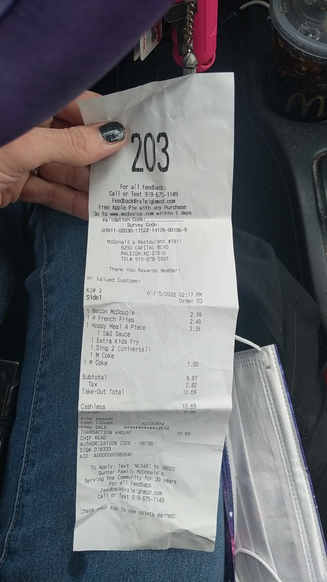 Read moreIf I could give zero Stars for this mc Donald's location, I would. I came here today so my son and I could grab a quick bite of food to eat for lunch as we've been out shopping and around the area. I frequently use the McDonald's app near my house and other Raleigh area locations, I have used this same exact deal on the app MULTIPLE TIMES IN THE PAST FEW WEEKS , YET SOMEHOW THE TWO RUDE DISRESPECTFUL GUYS WORKING THE FRONT REGISTER SAYS THAT MY DEAL WON'T WORK BECAUSE IT'S A " UNIVERSAL DEAL" which is complete b.s. The deal on the mobile app is you can buy specific meals that are eligible and listed under eligible meals, & you get a free Happy meal with your meal purchase. Even though two different meals I tried to use were listed on the app they refuse to help me and let me use my code. Then on top of that I couldn't use a different code since I already claimed that code on the deals and would have had to wait 15 whole minutes in order to use another deal. By this point of being disrespected and embarrassed by these 2 guys working the cash registers, we're hungry so I go ahead and pay for the food. Whenever I get my receipt I realize why the code wouldn't work to begin with.... The guy working the cash register, purposely rang me up for each item I had ordered, instead of letting me save money and charging me for the "MEAL PRICE" . So I was charged for each individual item (an entree , medium drink , and medium fry. I AM ABSOLUTELY DISGUSTED BY HOW I WAS TREATED, YET WHEN I POINTED OUT FACTS, NOBODY EVER OFFERED TO MAKE ANYTHING RIGHT WITH ME. I WILL MAKE SURE THAT I POST MY HONEST REVIEW ON EVERY WEBSITE LISTED UNDER THIS MCDONALD'S LOCATION . AND I WILL BE CALLING CORPORATE OR WHOEVER IS IN CHARGE , Because this is extremely wrong and unfair . I was not rude towards these employees, until after the fact that I was way overcharged for multiple items, and no one offered to fix...