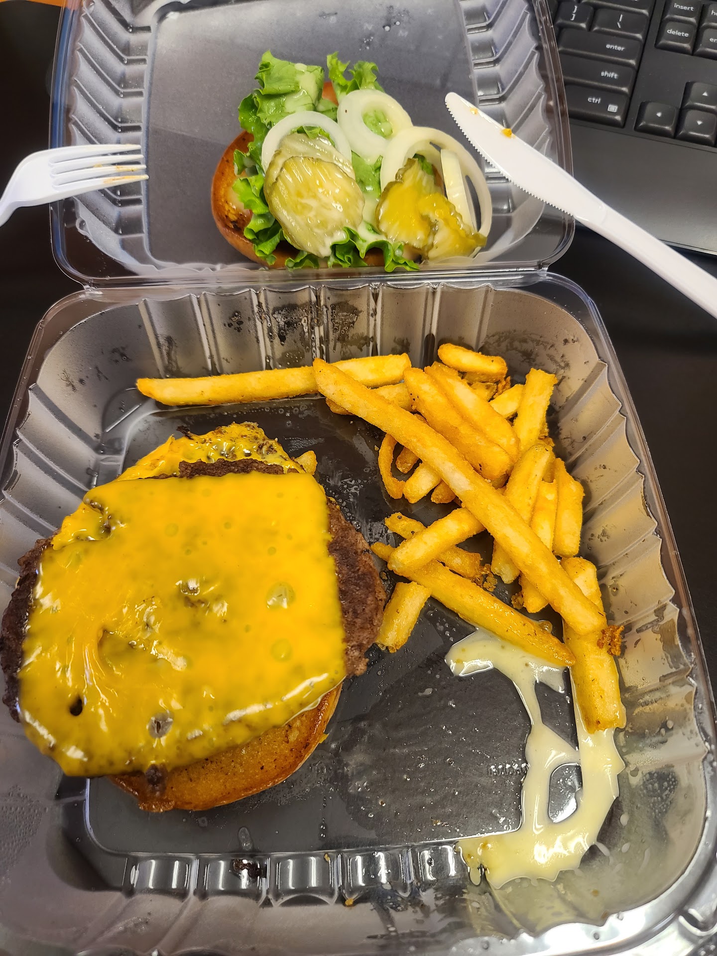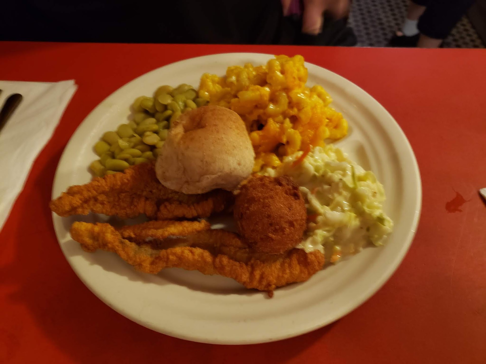 Hungry from wandering around GalaxyCon, my wife and I bypassed sandwiches in favor of platters: fried fish and BBQ, respectively. Both came with a hushpuppy, slaw, and two sides (mac n cheese for both of us, butter beans for her, and fried okra for me). While neither dish was attractively plated, both tasted considerably better than they looked. After decades, The Mecca has making this kind of food down to a science. Both the fish and the okra were fried to a golden brown sans greasiness, the slaw was creamy, and the BBQ was not dried out. Admittedly, vinegar-based is not my preferred style, but The Mecca’s was as good as a rendition of that type as I’ve had anywhere.