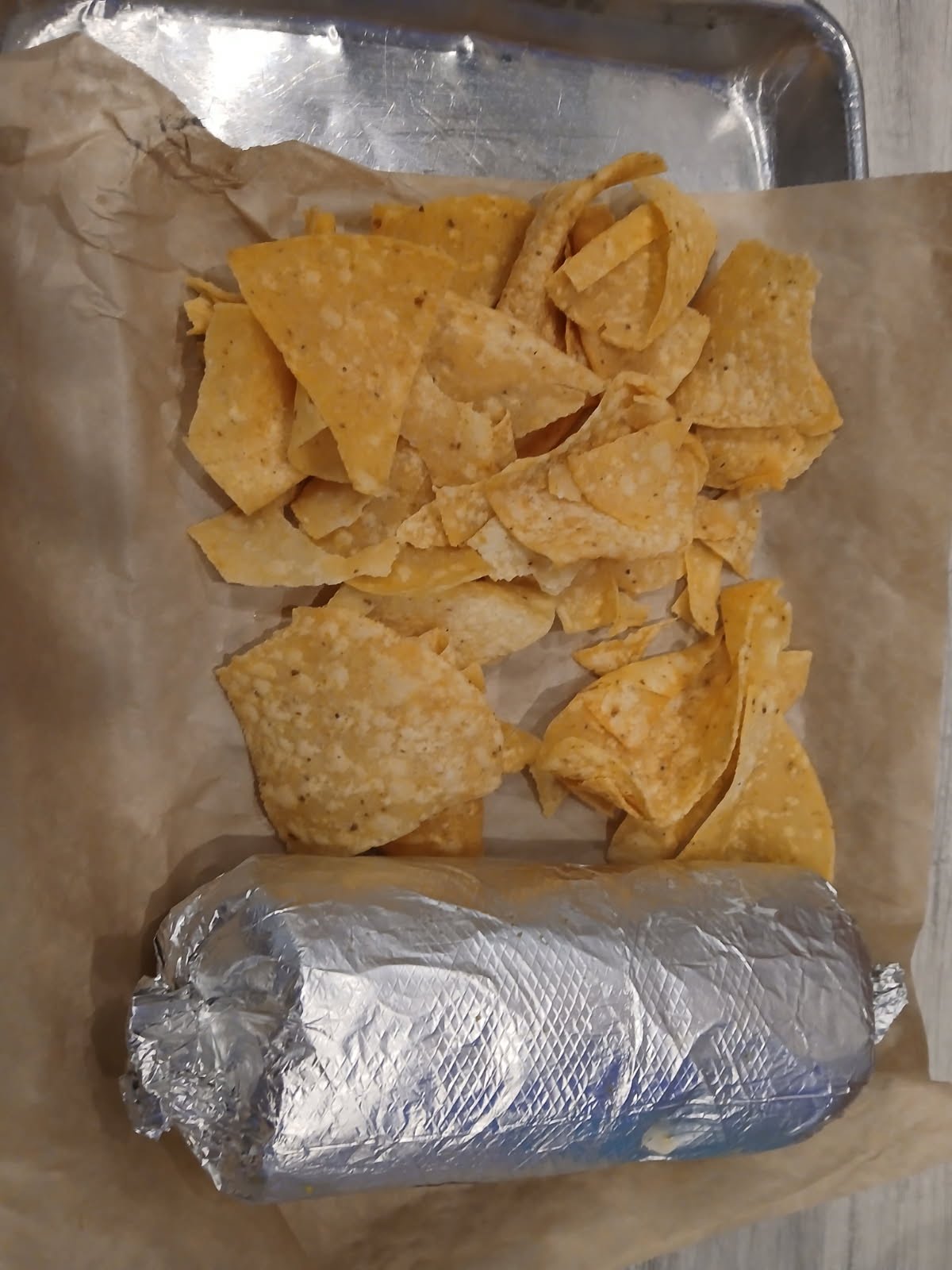 Usually my burrito is about twenty percent larger, and I usually have a decent amount of chips, this was a little short and they also seemed like they had been sitting out all day. I will attach a photo of the chip situation.