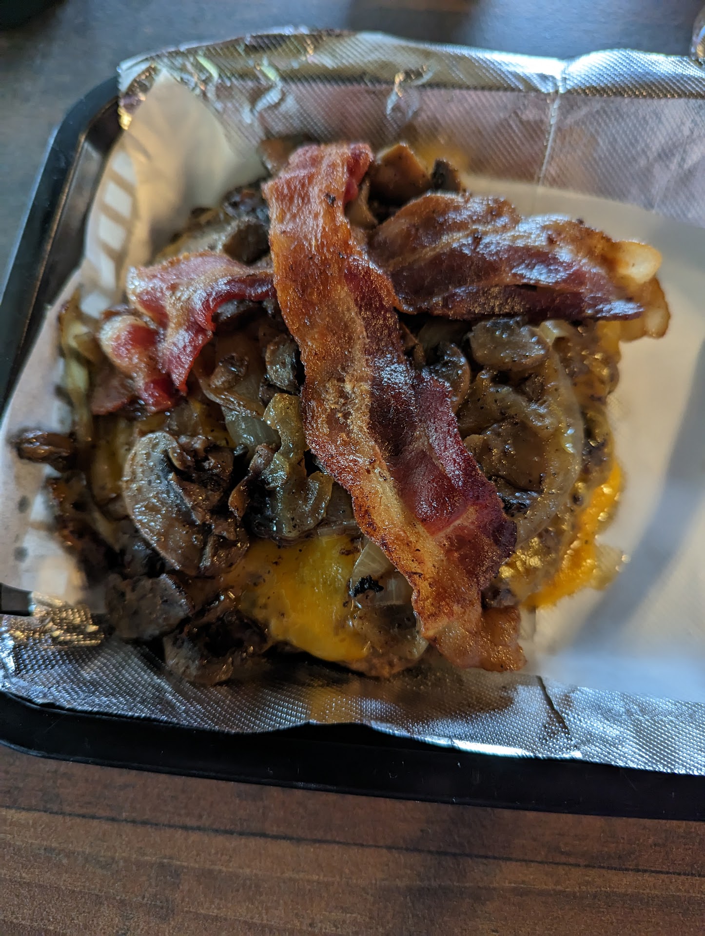 Read moreIt's the Spirit Airlines model: a burger is only $6.99, but everything is an add-on. Cheese, most toppings, the "styles", bacon, special sauce, a real sized patty, and yes fries too are going to be extra. In the end, you're going to pay as much as (if not more) than any other burger restaurant for a pretty decent burger, it's just going to take you a few minutes of studying and performing mental math to get there. Yay. Math.
