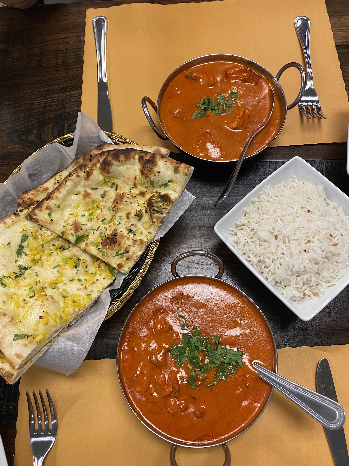 I also ordered a mango lassi which I loved. The garlic naan bread was also really good. It was not overbearing with garlic and was not overly seasoned so it worked well with the additional spices left for us with the Pratha bread.