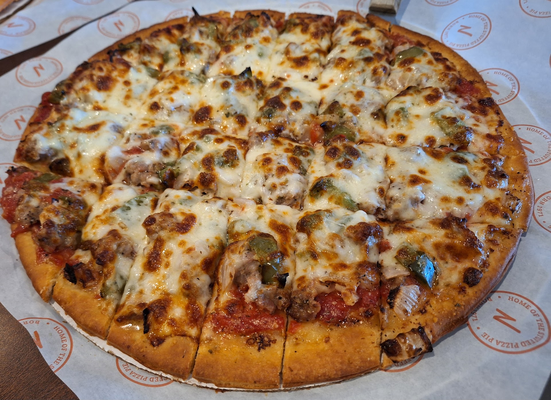 I have heard and seen so many good reviews about this place, and how their pizza is the "best"... I decided to order it for my family to try it out, and although they aren't used to Chigaco style pizza, we are HUGE NY style pizza fans (get that quite often, so we know where the BEST place is š). First off... I decided to order from postmates, because it is convenient, and it said it would be delivered in 45-55 minutes. Ok, it was getting a little late, but we could wait until 6:07pm (which is the original time it said it would be delivered by). My poor postmates driver was sitting at the restaurant for close to an HOUR to pick up my food. The order was received in their kitchen by 5:22pm, the postmates driver wasn't able to leave the restaurant until 6:33pm, delivering it right at 6:43pm. Now, if I was a customer in the restaurant, I would certainly NOT wait an HOUR after I ordered to the time it was brought to the table. I understand it takes a while to make a pizza and a sub, but I have worked in MANY restaurants, and I have never had guests waiting over an hour to get a hot meal. This is totally unacceptable. I literally had to cook something else for my kids, because they were crying because the pizza took an hour and a half to get to us. This is not the postmates fault. I saw he was at the restaurant waiting on the order forever, and he honestly was the nicest postmates delivery guy. The food.... the pizza was OK. We got the thin crust, so not much sauce, but maybe that was a good thing, as the sauce reminded me of "homemade" sauce, but the kind that is like... a can of crushed tomatoes, on top of the lightly olive oil on the crust, and maybe spices on top of that. Not really a marinara or pizza sauce. š¤·āāļø The crust was really chewy, and bland... kind of reminded me of papa John's crust in a way š¤¢. The Godmother sub was really good, and only complaint there is it got a little soggy waiting on the pizza to come out, but that is kind of to be expected with a hot sub for delivery.