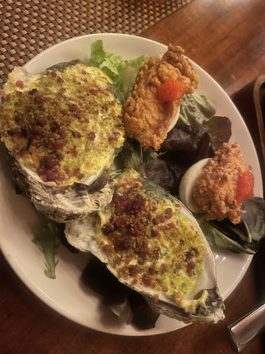 Read moreNot my cup of tea! I read a review that suggested eating here if you loved Flemings and Sullivans. In all honesty, I wish we had just went back to Flemings or Bin 54. We had a reservation for 8:30pm but we had to wait about 25 minutes before we were seated. We were celebrating someone special’s birthday. The ambiance was nice but it did get a little loud in there towards the back were we were seated. No major problem with the noise level. It’s just not as intimate. Now about the food, we ordered the NY Strip and the Filet. Both were cooked Medium Rare as requested but some both were extremely charred (of course it plated on the bottom so we didn’t see it). However, we could taste it along with the all of the SALT on it! I ordered two sauces to add a little flavor to my Filet Mignon (Hollandaise/Béarnaise). We ordered mash potatoes as they were just okay, nothing to brag about. The Mac-n-cheese was so salty, I couldn’t eat it. It tasted as if they boiled the noodles in a ton of salt and didn’t remember if they had salted the water so they put more salt when mixing it up. The sautéed mushrooms were a little different, came across as canned mushrooms. I could be wrong there. We ordered rolls and they weren’t complimentary. 🤔 They were just okay, I for sure wouldn’t pay for them again. Maybe they probably could use a different kind of butter (a creamy butter perhaps) to add a little taste to them. The appetizers we chose were the deviled eggs w/fried oysters and Oyster Rockefeller; both were tasty. We spent $220, not including the tip. Oh we did receive a complimentary slice of cheesecake. It was different but again, just okay. My margarita was just okay also. The price was okay as it is considered to be a high end restaurant, we just wished the taste matched the price. I do not recommend this restaurant if you’re celebrating a special occasion. But if you’re looking for an upgrade from the Outback maybe…this is just my honest opinion. And NO we didn’t send anything back nor did we complain. We simply noted, not to...