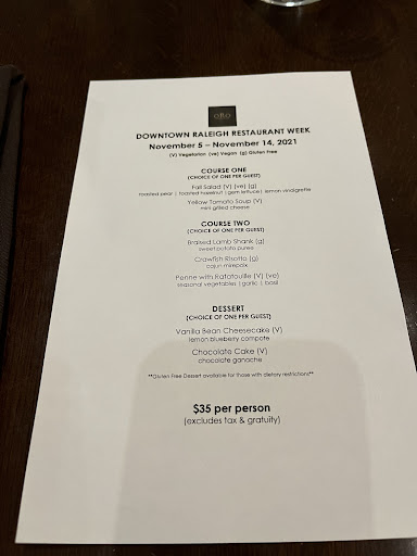 Read moreThis place is a gem. I dined here for the Downtown Raleigh Restaurant week in hopes or trying the limited menu items. Unfortunately the two entrees that we wanted to try, lamb shank and crawfish risotto, wasn't available. Nevertheless, that didn't stop me from wanting to try someone else.