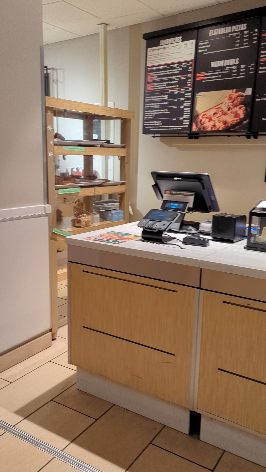 Second time at this franchise and first at this location. Very uninviting and unfriendly. I was the only customer and wondered around looking for the coffee cups as I found everything else that appeared to be completely set up for self service to include multiple kiosks and abundance of overhead cameras. After being ignored, I managed to flag down a worker behind the counter who appeared bothered and was told I must first pay to then be handed an empty cup if I want coffee. She had a little bit of an attitude as if I was supposed to know how their system works.