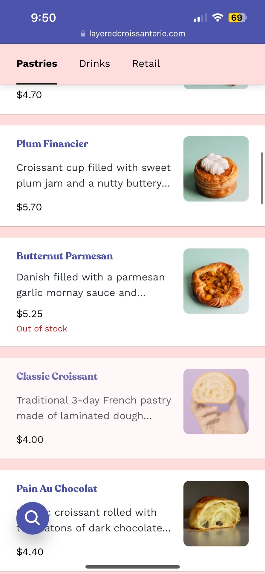 What keeps me coming back is when Layered Croissanterie is good, it’s really good. I reeeeally wanted that butternut squash croissant/danish today. I had been thinking about it all week and was so excited to have it again, and instead of them posting and saying, we’re nixing this one a little early, they misdirect me to online preorder an item that they just decided they’re done making. If they were better about communication and customer service, they would either make the item through the weekend as stated in their posts, or make it clear the item is no longer available. The bakery has been open for 5 years as of this summer, so it feels like at this point it isn’t a problem of kinks being worked out by an inexperienced team. I am left to conclude that the team can think up some really excellent recipes and execute them to near perfection on a regular basis, but is not interested in providing a stable, direct, responsive communication style with their social media branding or with their staff.