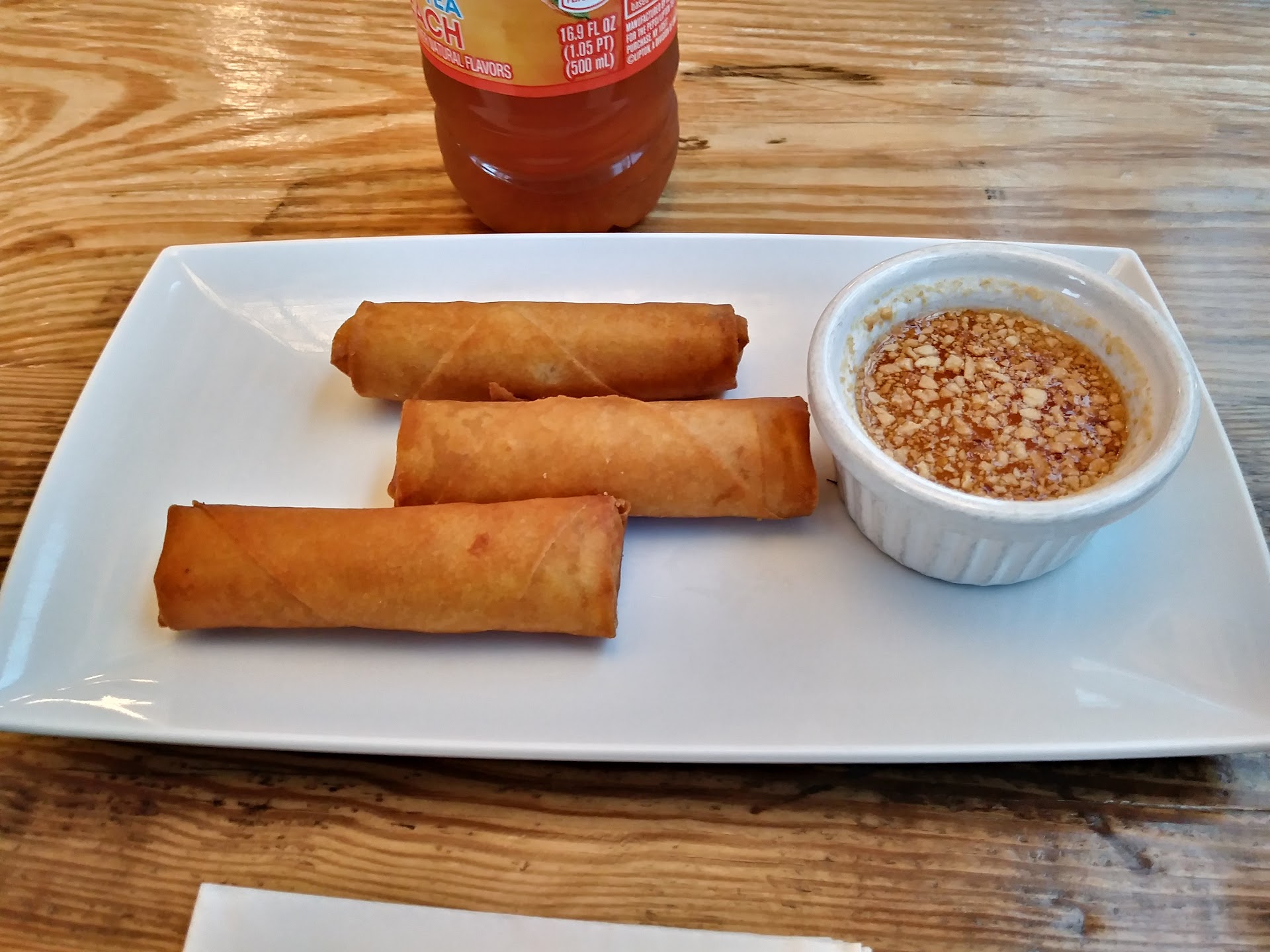 The spring rolls were large and homemade dipping sauce for the spring rolls was very good, but the meat inside was bland and the chicken dry. We all enjoyed them overall. We didn't try any drinks except for Thai iced tea, which was quite good.