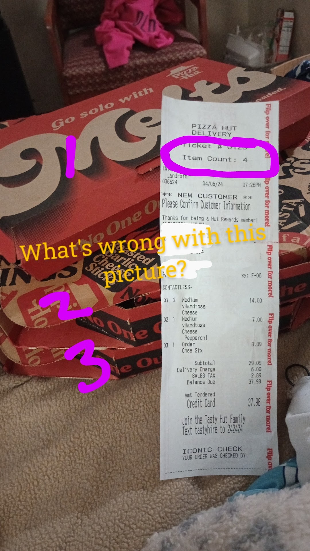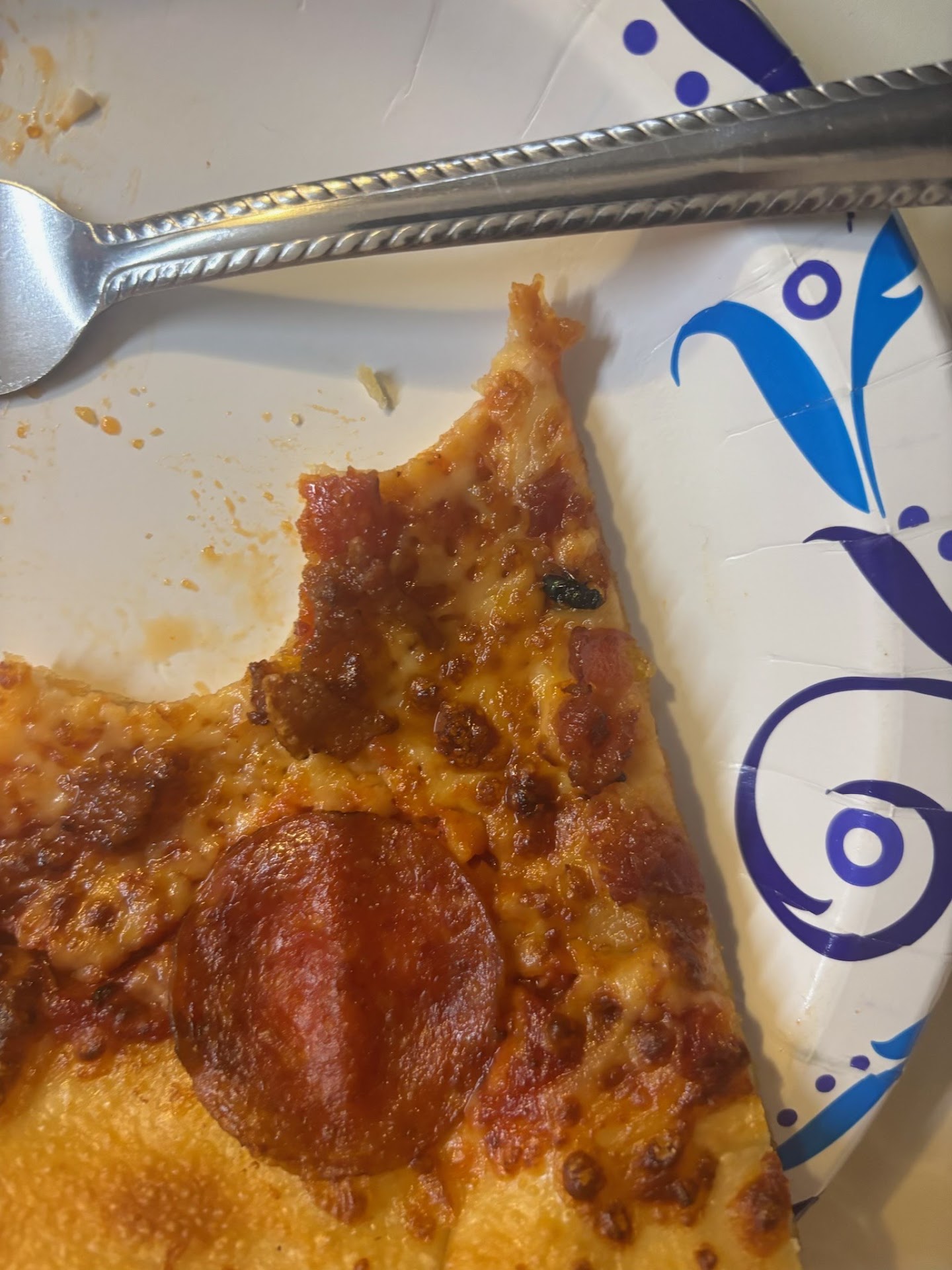 Read moreTonight instead of cooking I decided to order pizza. Everything was fine with the deliver , the delivery driver was unable to find my door and called me to get help. He was very kind and professional. Once I had eaten one piece and moved on to another I noticed what I thought was a burnt piece of bacon but upon closer inspection I realized it was a FLY! A fly had been cooked into the pizza ( burnt to a crisp) and I was only one bite away from eating it! I called the store and was transferred to what I can only assume was a call center and once the gentleman answered I could barely hear him I explained the issue to which he told me " I never heard of that before" ....... I asked only to be refunded for my pizza and he stated I could have another made which I did not want. I was put on hold for 15 minutes , long enough for me to get in the car and drive to the store with the pizza still on my plate (I was still on hold). I showed the slice to the gentleman at the counter and told him exactly what had happened and showed him that I was still on hold. He stated he could only refund me for the item so I got $12 back for my troubles.
