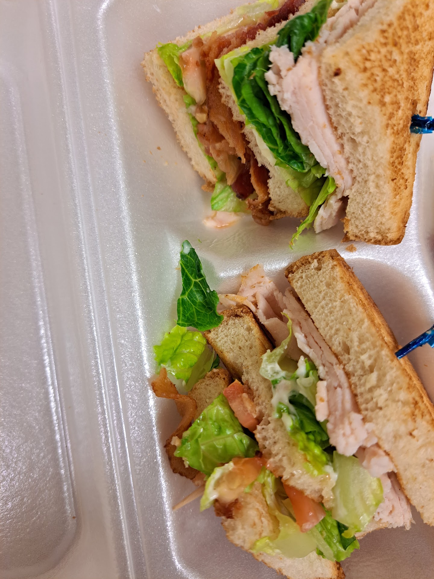 ย ย ย Read moreI'm a state employee and walked over here for the 1st time, for lunch. I hate to ever say anything about anywhere, but this was bad! I will NEVER return to spend any money here whatsoever. This was a turkey club sandwich, notice the literal "tiny pieces" of meat. This sandwich is mainly all bread and lettuce. Another co-worker had the same issue. Another ordered a burger and the meat was razor thin. For $15 total (ordered a drink too) there should be way more substance on this bread. What a waste of money. NEVER AGAIN. This appeared to be a black owned business and with that being said, coming from a person of color myself.... PLEASE DO BETTER! Then we wonder why blk owned anything gets a bad reputation for cutting corners on product and quality. For the same price or less, people can go less than 1 mile over to Jersey Mike's subs, Subway, etc, and get way more protein on...