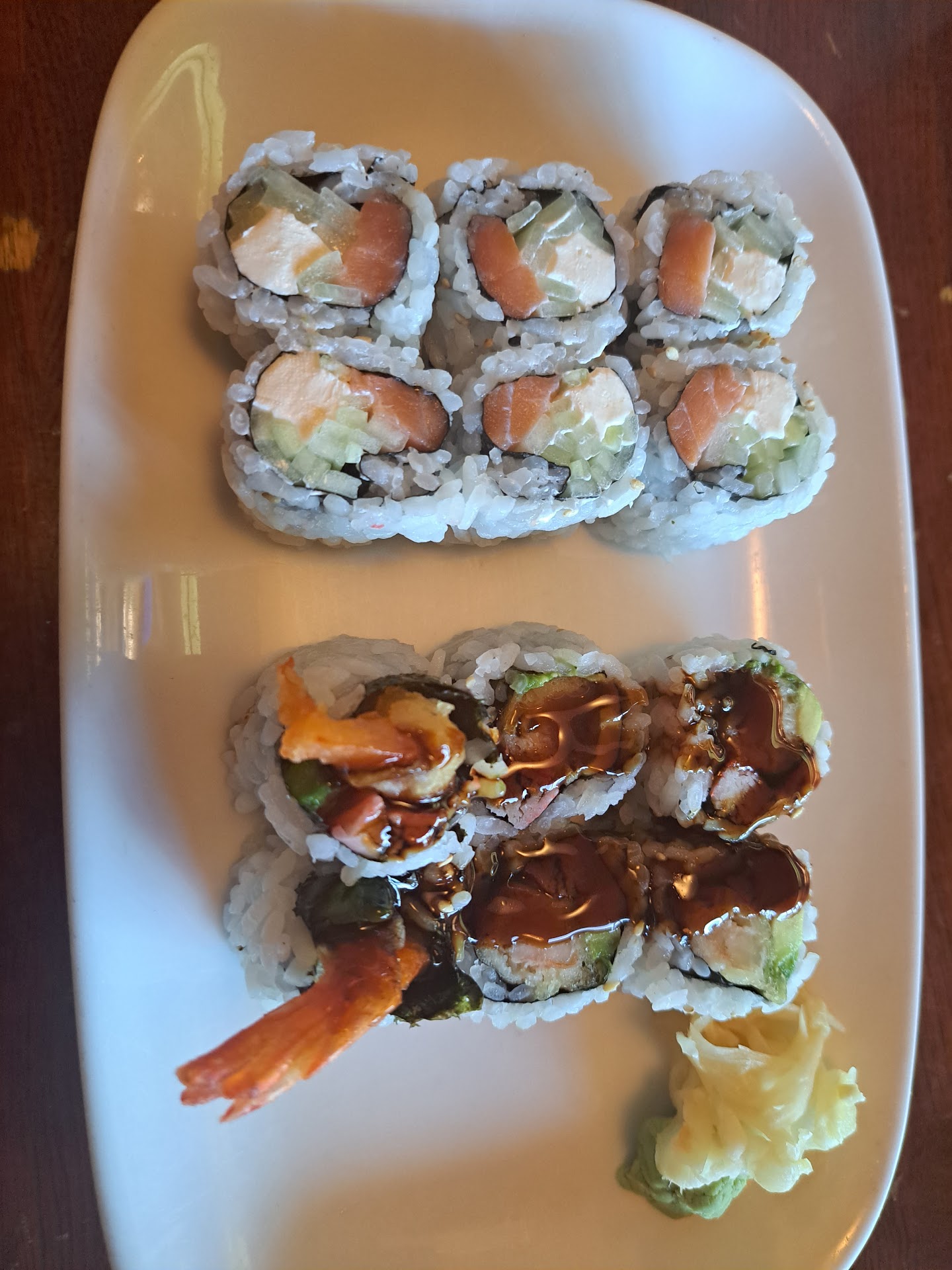 I will say, our service tonight was good, despite it being a busy dinner shift. Our waitress was very sweet and very attentive. I appreciated her very much. But the forced gratuity has me thinking we will start looking for a new spot. $216 bill (with $40 in forced gratuity) for half rolled sushi and bland rice just ain't...