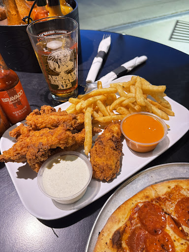 Service-Saturday lunch with only 12 tables sat, took the very young waitress 7 min to greet us after she gathered herself from her group of waitresses. Thereâs too many inconsistencies with our experience with her to even state them all. Confused, interrupted mid order to give us more time to look over menu when I was literally ordering still. Wings came out first when we ordered them with our pizza, sent those back to sit under an assumed heat lamp. Got charged for sauce she said I would not get charged for. Got charged a second beer when her trainee said that I would not. So I had 2 beers sitting in front of me with one getting warm that I was still charged for. How in the world this girl is training somebody is speaking volumes for the service. Then takes my debit card at the end and runs it only to give me the slip to sign without an itemized receipt, so I had to ask for that. Just aggravated in an aspects.