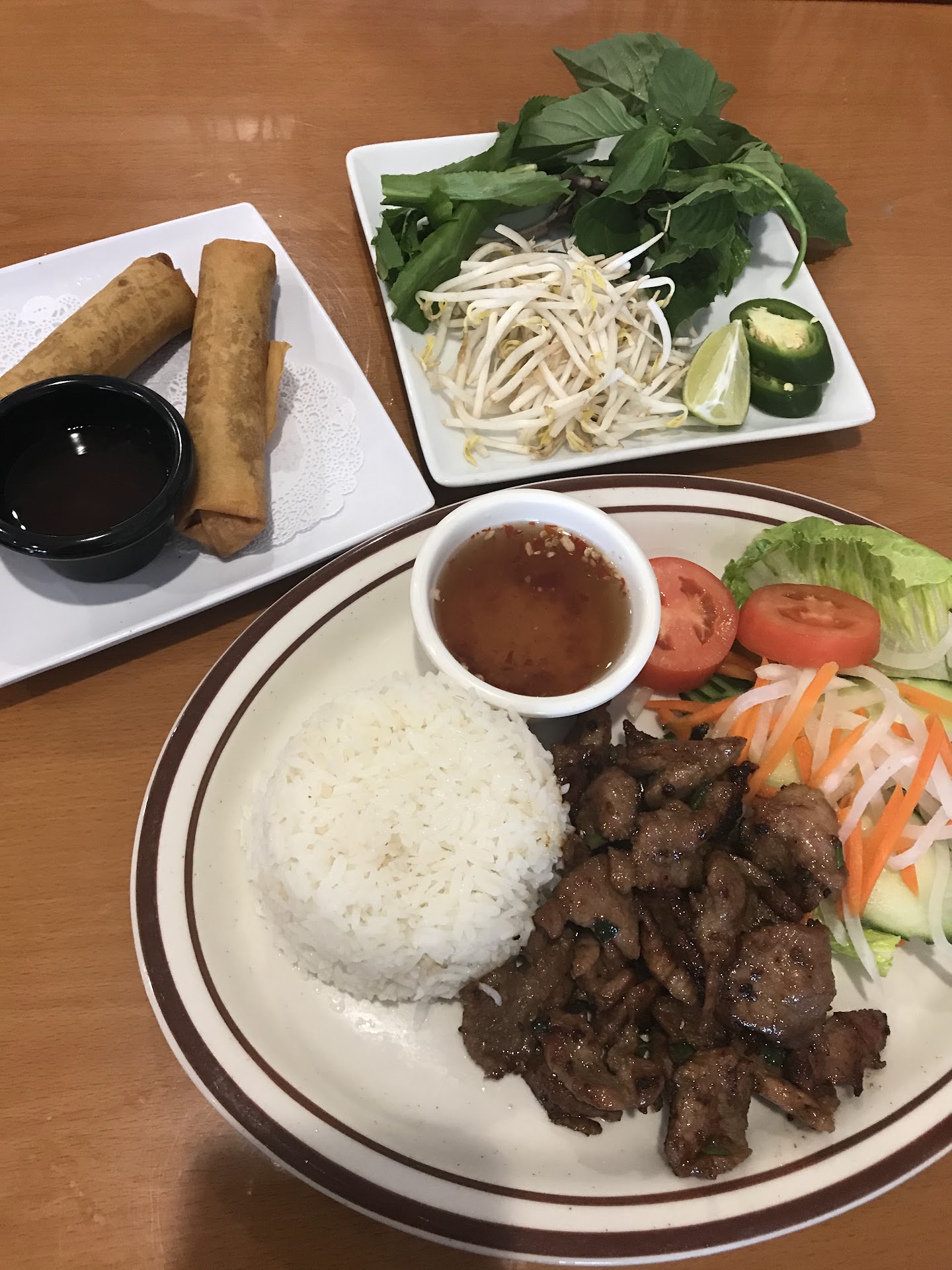 It took five long years before I ever decided to revisit this establishment, but what a great experience. Had a severe craving for Pho Tai (rare beef). My usual choices were not opened, so I figured I'd have to settle. However, it turned out to be a great visit. They had updated the entire restaurant decor. The sweet lady told us we could sit anywhere, was it was outside of normal lunch hours, so there were plenty of seats. Once we were seated, she provided us with menus immediately and asked what we would like to drink. After we received our drinks she came back shortly and took our order. Less than ten minutes later, she came back with our food. The Pho Tai soup had changed and was slightly less concentrated compared to before. The rare meat slices were not the paper thin kind, but had some chew to it. It was still very delicious! The Banhmi was delicious. But the highlight dish was definitely the grilled pork chops over rice and the fried spring rolls. They were so delicious. Ready to return to redo the whole experience again.