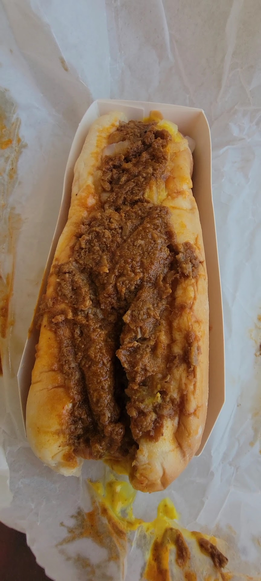 Also from what I can tell I didn't see a toppings menu ...other than chili Mustard and onions " a sign says that" I couldn't tell you what you can get on a hotdog .