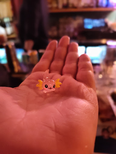So glad to have this little dive bar in Raleigh. Expect to get treated like a regular, even if you aren't, with cutesy drinks and a comfortable atmosphere. Their beer selection is good and they have drinks with glitter in them. GLITTER DRINKS! And, not to brag, but I was having a particularly bad day and was handed a tiny resin axolotl. Glitter drinks, sea creatures, chalkboard, cow couch, and an Alan Jackson cut out (not the one that was in Kmart in the 90s). Come hang out and see what's up. Good...