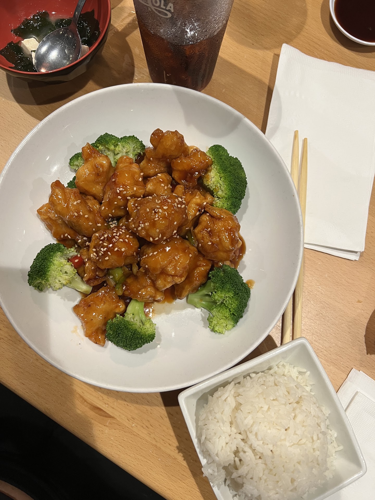 Took a trip to Sushi Nine for the (4th?) time now and finally ordered a different dish. First, I got miso soup which was good but could have been a bit saltier (what can I say, I do love saltier foods). My boyfriend got two rolls- the TNT roll and the Flaming salmon roll. In his words, it was a "10/10!" I ordered the sesame chicken with white rice and it was good! I would rate it a 7/10. It wasn't super groundbreaking, but the flavor was still good. It was pretty filling and I am taking home enough leftovers for another meal. The gyoza was also very good. I think the gyoza was my favorite part of my meal! It was nice and crisp and the sauce was tasty. Apart from the food, the service was good. I wasn't given a refill at all though (luckily I finished my food at the same time as I finished my drink so it ended up working out, but in the event I wanted to keep eating, I would need a refill). The wait staff were all super super helpful, kind, and accommodating! I have nothing bad to say on their service at all. As for the overall vibe of the restaurant, the playlist was super fun and upbeat and almost all songs that I listen to on a daily basis which was super awesome. All in all, I did have a good experience at Sushi Nine, but I think a few things could be a bit better! There is always room for improvement and maybe I am being a bit nit picky but this all comes straight from the...