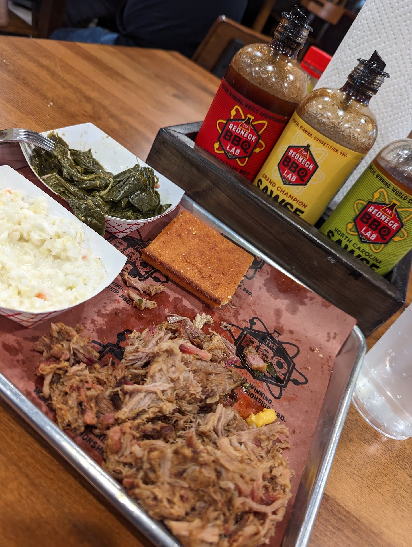 I excitedly anticipated The BBQ Lab's opening in North Hills as a way to have some great BBQ in walking distance, and visited for its opening lunch service today. Disclaimer: I have not visited the original Redneck BBQ Lab location in Benson as of yet, and this was my first experience with the brand. In short, the BBQ was good, and I look forward to continuing to try it as this location gets its feet under it and refines everything.