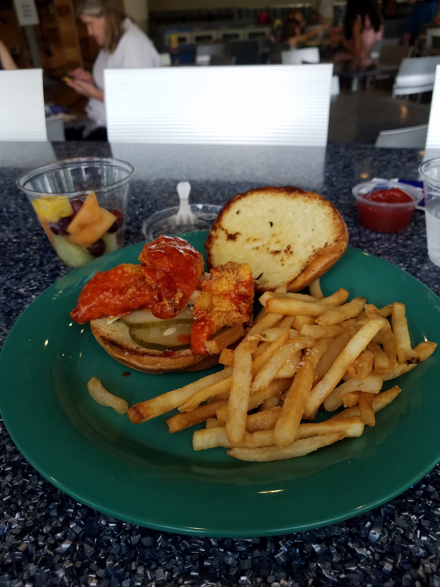 Some sandwiches are delicate symphonies of flavor; but their vegetarian chicken sandwich was a percussion solo on a steel drum. It resisted, it pushed back, it dared to prove commitment to lunch. You don't eat it so much as survive it—and honestly, I think it will always win. The other sandwich claiming to be Chipotle chicken, unfortunately it's more like opening a novel titled The Spicy Adventure only to find 300 blank pages. It wasn’t bad, exactly—it was just aggressively un-chipotle. A culinary catfish, if you will. Oh and thank you, dear café, for not telling me my sandwich already came with fries, and then so graciously letting me order another pile. Now I have enough cold fries to start a side hustle. Exactly the dining experience I had in mind when I walked in.