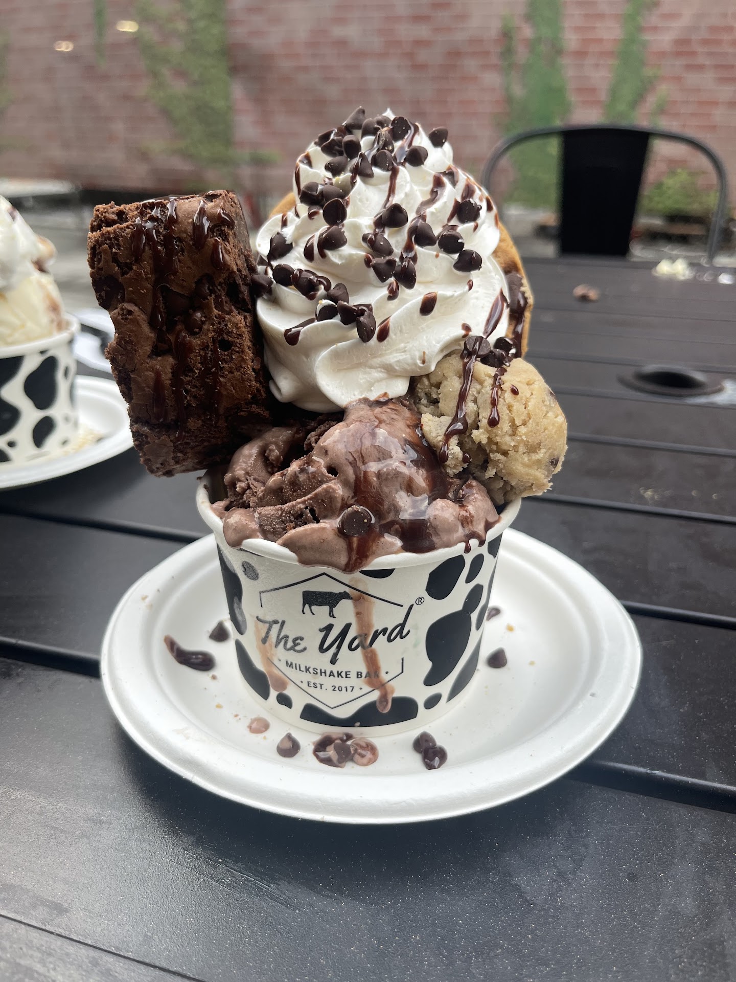 It's a nice location (minus the current construction) and all the screens showing the menu and various options with ingredients was helpful while waiting in line. The ice cream itself was good. The presentation of the various specialty desserts and the glass they come in is probably the most fun/unique thing about The Yard.