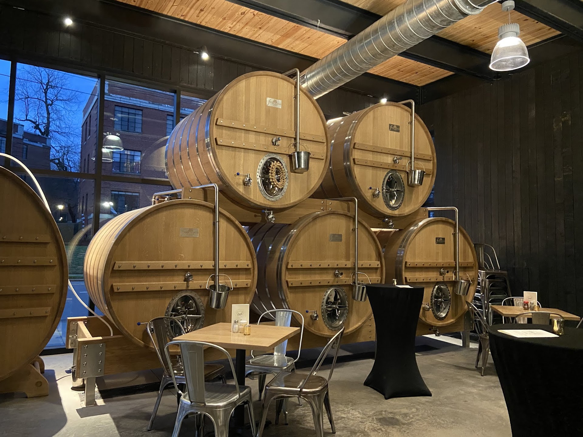 Trophy's brewing & pizza location, with seven foeders, has a specific focus on sours and wild beers, and carries a lot of unique / experimental beers, in addition to a nice selection of IPAs, lagers/pilsners, and other classics; I was very excited to see the incredible list of unique brews in a time where the beer market has been dominated by hazy IPAs, and beer with the word "milkshake" in it. While there, I tried two styles I had never heard of: Norwegian Raw Ale, and Tart Gratzer (AKA Grodziskie), both of which were delicious.