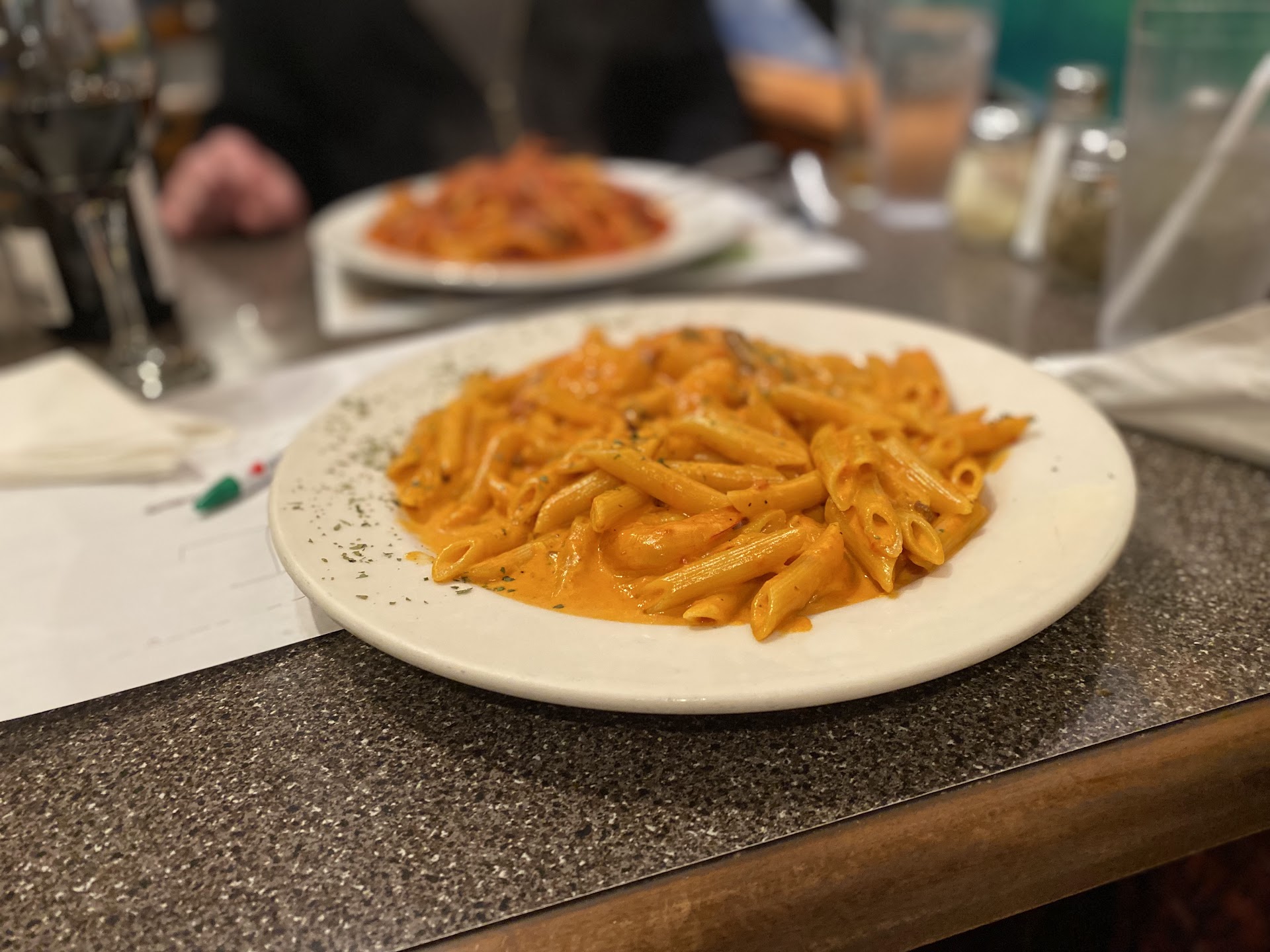 I guess I don't get it. I never leave reviews. I saved my receipt to be sure and remember to review this place. I stopped in with my wife, daughter and mother-in-law to cool off, grab a pizza and relax for a few minutes after enjoying downtown. We ordered a large 2 topping pizza (pep on the whole thing onions on half), 3 sodas, a sweat tea, and 2 side salads. My wife had a Cesar, I had a House Salad. I ordered a House salad, no tomatoes....now, I get it...it's a small side salad...I don't expect much. They brought me a plate with iceberg lettuce and onions along with 1 small container of ranch. No crutons, no cheese...no...nothing. That was a $4.15 salad. I asked for an additional container of dressing...mind you, these are the tiny clear plastic containers with a lid. They literally charged me an additional 90 cents for the second container of ranch to add to my lettuce and onions. My wife's Cesar was a little better...but it wasn't an entree type salad by any means...$7.80. They brought out the pizza, and initially the entire thing had onions...which we had only asked for half because our daughter doesn't eat onions. She pointed it out, they took it back and brought out a pizza made correctly...didn't take too long, maybe an additional 10-15 minutes. They brought us out a thing of garlic knots to hold us over while we waited...but once we tasted them we were all kind of taken aback because they were literally just dry bread. No seasoning, no flavor...just dry bread balls. It was ODD. So, there were barely any onions on the onion half...you can't taste the onions. That's an additional $2.05 to add I dunno...10 small slivers of onions to half a pizza...and then an additional $3.10 to add pep to the whole thing. The pizza itself was decent...it was average. All said and done after paying $15 for 3 sodas and a tea our total bill was $54.83. Add a tip and you're looking at a $65 bill for the family to enjoy 1 large pizza, 2 small salads, and drinks. I totally get it...we eat out a lot, and are used to paying money for good food. It's just...it really wasn't worth $65. When I got the receipt and read all the add ons it just felt like a money grab. We could have walked in any Joe Schmo pizza place and had better pizza for half the price. The location is great, it's nice to be able to walk in from downtown and grab Italian. Our waitress was nice, but the rest of the folks working in the place seem aloof...almost rude. Maybe the pasta is amazing. It's just not that amazing. I really don't get all the incredible reviews. We...