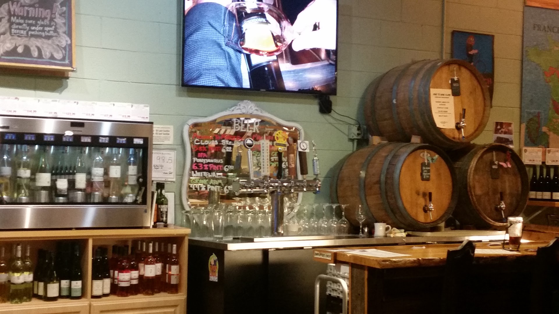 Read moreI had a wonderful experience here! After a discouraging experience at a nearby shop, I decided to pop in for a glass of wine. As soon as I walked in, I was greeted by the person working. She was very friendly and warm, and helped me decide on a delicious glass of their dry rose on tap. I also ended up buying a bottle of an NA bottle of "wine" to share with a friend, and the other staff who rang me up was also kind. They seem to have a wide variety of wine and some beer to choose from as well! I love that they have the self-service tasting machines also! Great wine, personable and helpful staff!...