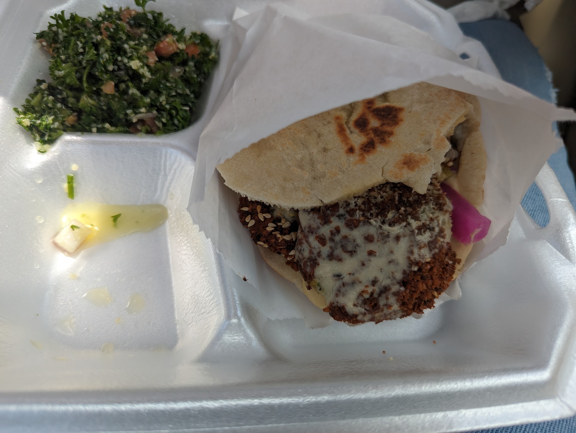 Read moreI came by this past Friday at around 1:15pm. When I walked in there were 3 or 4 women working. Before greeting me they talked off handedly between themselves. I felt uncomfortable because even though I was the only one there it took several mins for anyone to say anything to me. Just looked at me. Then one woman asked what I wanted and I started to order. Then she said with snarky look one min. Then the lady right next to her said what do you want? So rude. The next customer was a man and they were so welcoming the min he stepped in as well as the guests behind him. The falafel pita was good but the amount of taboulah I received as a side was sad. These women are rude as hell and should never be in customer service. They seem racist. Wonder if that's why they had to hang the all inclusive poster that is obviously not genuine. If you don't like Americans the leave the country. We dont want that here...we are all different and here that is good. I'll never ever come back was even worried they might have messed...