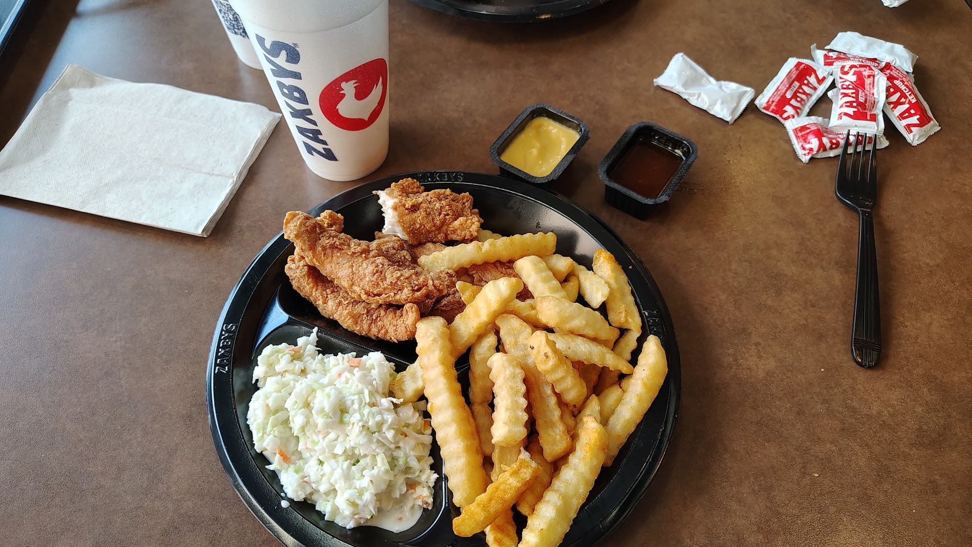 Read moreWorst Fast Food restaurant experience of my life! I went for lunch &parked in the parking lot of the building next door which has signs saying for zaxbys customers only ( which I was) when I noticed the other properties restaurant ( asian place mama jees?)was no longer open and stepped 10 feet over to their door to see if there was info about what happened to them.... IMMEDIATELY! some towing company representative is taking my picture and slapping a boot on my car tire!!!!! And wants me to pay $75 I went to let the Zaxbys manager know what happened and he pretty much says it out of his hands. Then the owner of the resturant came around, shared what happed with him and he did NOTHING ! Later saw tow truck guy repeatedly hanging out in the restaurant, with the Owner , waiting for the next victim. I understand it maybe a problem with people parking and walking off elsewhere, but I swear I was 2 minutes & 15 feet away from my car, it's just rediculos...