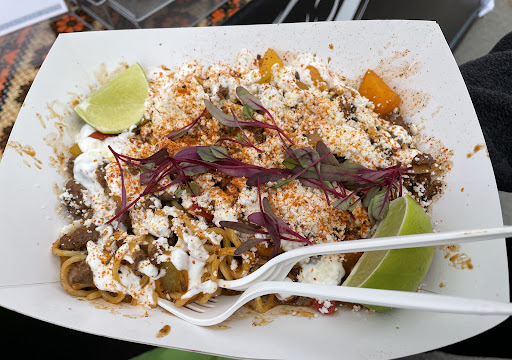 My husband and I tried Off The Plancha recently while they were at the La Jolla Open Aire Market. We were intrigued by the Mexican & Japanese fusion and ordered the carne asada yakisoba. It took less than 5 minutes for our order to be prepared and it looked and smelled amazing! We actually took it home to enjoy and it stayed piping hot until we got home and it was delicious. I cannot tolerate heat from spices and they assured that it was flavorful, not spicy. They were right! The lime provided complements the dish really well. The carne asada was cooked to perfection and paired nicely with the noodles. It was a large enough portion for us to share and I thought pricing was reasonable. Service was great and the guys were all friendly. They even gave our dog a treat! Highly recommend checking out Off...