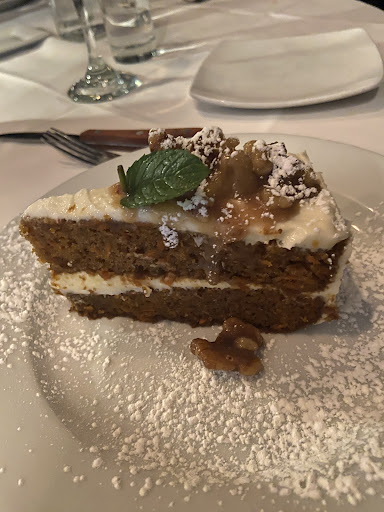 The meatballs were amazing. Great flavor and super moist. 2 meatballs in the app. Carrot cake also very good, a decent slice and those candied nuts on the top added a nice crunch and sweetness. Desserts are $12. Bill came to over $500 for tax and tip for 8 people.