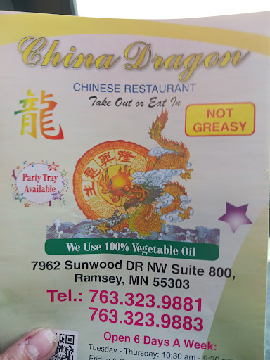 Read moreWe've been trying to find our go to Chinese place ever since our favorite closed over two years ago when the city of Anoka bought everyone out in the building they were in. (Nothing in that corner yet, just a for sale sign.)I digress. Finally a place that makes chow mien with more than chicken dust and celery. (Yes I had literally chicken dust from another restaurant.) The General Tao's was spicy but not overpoweringly so and delicious. Pineapple Chicken was equally good. You didn't need a magnifying glass to find the meat in the fried rice either. Only thing I forgot to ask when ordering was weather or not they have brown rice, minor. If I did have one complaint it was the size of the egg rolls. They are about the size of a spring roll. I personally don't mind I usually end up splitting one with my daughter. It did however effect ordering ultimately. I ordered as though they'd be shared by a couple of us and when they came in so small my daughter and I could have each had one and my boys and hubby could have each eaten two. But all in all I think we have found our new Chinese restaurant. Maybe not going to be as often as when we had one close but nice to know they are there. Anoka to Ramsay during rush hour is a bear and with construction on Hwy 10 coming up soon...can we say back roads??? Like we're going to be the only...