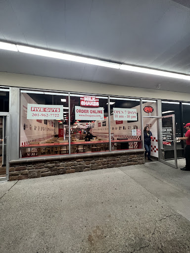 Read moreI entered to the sound of familiar music, the shafts of evening light illuminating my way to the register. A fine young man, Ran by name if the receipt is correct, proceeded to imputed my order with speed and accuracy. The food was prepared with care and unusual enthusiasm for such an establishment, lending a feel of appreciation to the fine quality of my food. The burger had two parties, lovingly rolled that morning and carefully wrapped betwixt buns, a recipe which I am told is proprietary. It was juicy and delicious, and the fries were perfect. Firm enough to be grabbed when ravenous, but soft to bite into, melting in my mouth in a way I can barely describe. I would come here again and again, and I would.not hesitate to bring friends or direct them here in my absence. Bravo, Five Guys of...