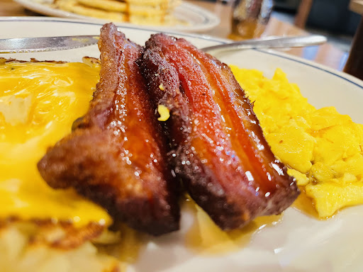 Read moreExcellent menu. I had the breakfast sample. 2 sausages, 2 Sunnyside eggs, ham, hashbrowns, bacon, pancakes, and coke. They have a good choice of syrups for the pancakes. I liked the butter peacon syrup. The only thing is about the person who served us was a bit harsh with regards to tip. We visited US for a few weeks. We didn't know about the tipping culture here. But ofcourse we had given tips earlier at a place before IHop. Here as well since we didn't know the amount (we didn't want to under tip). The guy said, "I wonder what I have done wrong that you haven't tipped me". That felt quite unkind. We didn't intend to not tip but we didn't know what amount. After hearing that even though it didn't feel nice, we paid $10 for a $18 bill. Food was great, the ambiance was great, ample...