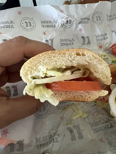 Read moreVery disappointed with this Jimmy Johns lack of quality and professional courtesy. Stopped in Wednesday evening with my toddler to grab dinner for my family. There were no customers but the four parking spots in front of the shop were full. I order two #9s a #8 and a #15. There's 3 guys and a girl working. I'm holding my son so I ask the guy placing the sandwiches on the counter to "please put them in a bag" he looks at me and sets a bag on the counter next to the sandwiches and just stands there. I attempt to get the sandwiches in the bag while maintaining control of my child to no avail. Zero help from the employee. I scoop up the sandwiches with my son and make my way out the door across the parking lot to my vehicle. When I get home I find out that one of the sandwiches the #15 had nothing...