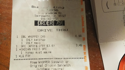 My last experience at this Burger King was last week, good food. Before that almost a year ago.