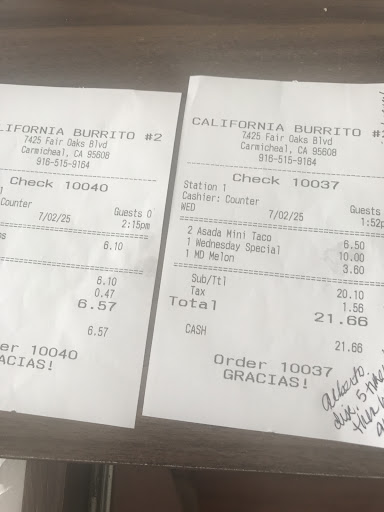 Not bursting with authentic Mexican flavor i was hoping for. I've eaten here and many other locations each time hoping I would get the Mexican flavors I was craving. Each time its like I knew what too expect kind of like when you go too McDonald's, nothing amazing just food. But what gets me is the prices, if you are going too overcharge for food at least give it some flavor. And like many other Mexican fast food if you order let's say a taco it comes with everything except what you would expect for instance if you want sour cream its a dollar and twenty five cents each per small taco not to mention its waterd down, tomatoes seventy-five cents. All said and done a crispy Carne asada taco with cheese, lettuce, tomatoes, sour cream, onion, Pico de Gallo, cilantro and salsa will cost you around seven dollars. And don't even think about avocado because that will set you back another dollar and fifty cents per taco. Like I said I've eaten here multiple times hoping it cure my craving I even went as far as stopping at my local grocery store and picking up a avocado, tomatoe and a small container of sour cream. Lol, doing that when buying four tacos saved me about twelve dollars. Another popular item they have are the Carne Asada Fries? Don't get me wrong I love Carne Asada fries but from any California Burrito I've been to i give them all the same rating and review a 2/10 . There is no focus on the main ingredient in the dish which too me is the fries. Second the meat of choice which i said before is bland. I know that the fries are frozen but most fast food joints can serve a crispy frozen fry, California Burrito can not. So in the end you get soggy fries with bland meat. It's like mush. Whether you do take out, dine in or go through the drive thru there are tip jars every where. Too me this always buts me back. Not only was I over charged but if I went through the drive thru exactly who am I tipping? Its my recommendation that if you can find a real authentic Mexican restaurant go there instead. Honestly it will take about the same time it does as the drive thru at one of these plus I promise the service and the food will be a thousand times better and they will give you a...