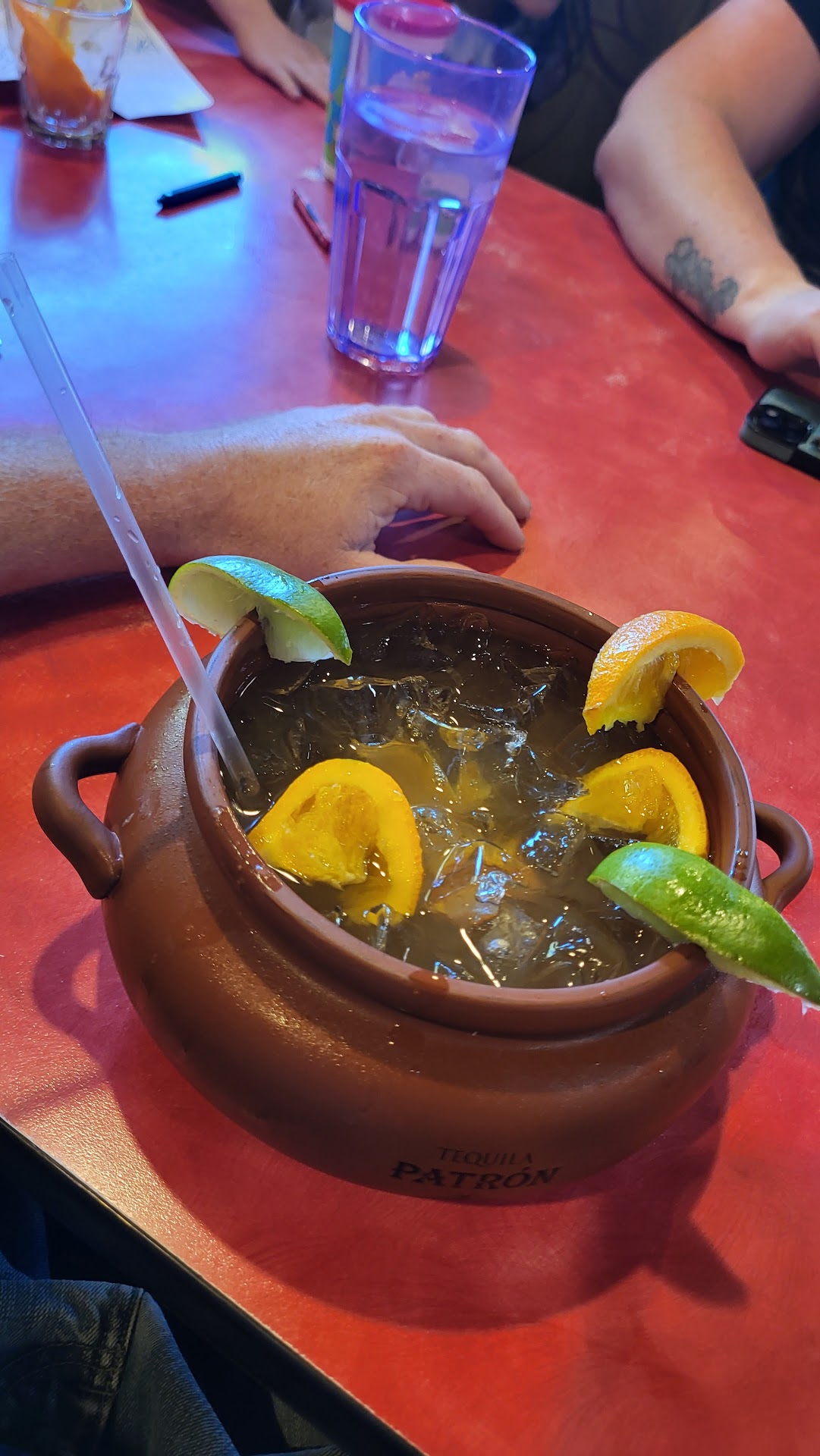The Tub of Tequila. After a LONG day dealing with my kids (5 & 3 y.o)and what felt lk a mountian of BS. When the sharply dressed and empathetic waitress looked at my amazing wife's tired an my tired, frazzled, looking faces. She deftly took our drink orders an politely waited for me to fumble my margarita drink request due to tiredness.... when asked "regular or Large?" Lk any guy I answered "Large" expecting a decent sized drink. What I was not expecting was what looked and felt lk a "Small Tub" of Tequila with flavor. A gourd. A I needed a cup an the only thing I could find was medium sized Vase I took the flowers out of to use, A "I've had smaller "Thirst buster XL" sodas" from circle K... an then as I stared my wife down in a "were ready to go waste not want not" duel of wills.... our server walks up raises an eyebrow seeing the determination on my face while staring down my wife an with a nod lk a boss with a chin lift says "you want to take it to go?" Oh the fury on my wife's face she shot him as I said "yes, totally." Just make sure you don't pop the seal before your outside of the parking area. Request granted. Drunk most of the rest of the night... .. .. oh an food was pretty good. Hit the spot where good food, meets clean, meets fancy display, meets price point for a decent night out. Family of 4 ninety one $ includs my 21 $ "Tub of Tequila".🤣😉 had me lit for hours... an I can Drink when...