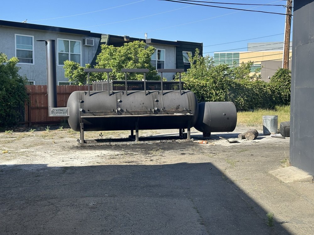 Now, I didn't see the smoker til we headed to the car and algae already devoured our dinner. If you're not familiar with smoking meats, this smoker is the exact opposite of your fancy pants pellet smoker. This massive smoker requires a pit master and every detail is mastered by hand and by eye. It's absolutely amazing how they can toss a slab of ribs and brisket in a smoker and let it work its magic. I'm obsessed with this place and I want to learn how to cook like this.
