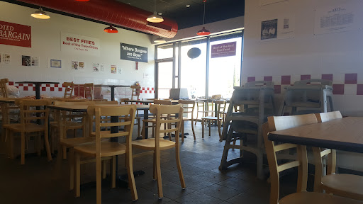 Read moreThis was my first visit to this burger chain that has seemingly unseated In-n-out as the nations most popular. The service was great. The young lady that helped us was patient in explaining the menu board, so we were able to make a choice. I chose to have my burger the same way I get it from In-n-out so I could easily compare. The good thing about Five guys, even though it's a little more expensive is that the burger is more substantial and therefore I felt more satisfied. And it was a tasty burger (read that with Sam Jackson's voice in mind). And I also think I might like the fries better. But to be honest, the In-n-out burger is more flavorful. In-n-out actually makes you want another burger, which is a good strategy. But the Five Guys burger makes you feel like you wanna come back...on another day. And I will be back. But, no offense to this particular location, I'm still a...