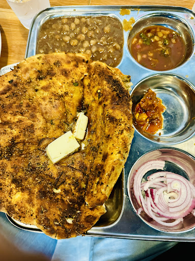 Read moreLocated in a shopping Plaza next to sprouts and handels ice cream, so perfect for one stop shop, get some groceries and dessert after dinner. Also easy parking too. . Inside vibe is simple and nice seating area with big windows. Clean bathroom. . Chicken briyani - such a flavorful chicken flavor indian fried rice hehe. The chicken is halal which i love. The presentation just looks so appetizing. . Chicken curry - nice big chunks of halal chicken and saucy. It went so well with white rice and chicken briyani mix. It was medium hot spicy, which was perfect still can taste the flavor and a little kick to it. I took the sauce home from the left over and made another meal with curry chicken. Nice and thick flavorful sauce. . Amritsari kulcha - star of the show, comes with Chana masala, tamarind chutney with onions, and raw red onions, and pickled veggies. The bread was puffy and stuffed with aloo potatoes, and topped of the bread was with some butter, and spices like coriander and cumin seeds and crush red pepper. It was served in a nice thali plate. . Tandoori fish pakora - served in a sizzling platter with nicely marinated fish with masala. Comes with some mint chutney on the side. . Butter chicken pizza - halal chicken with a nice crust and butter chicken sauce with it. Added some green onions for my eyes a pop of color and flavor too. Dipped my pizza in the chicken curry sauce was another level than ranch dip. . Overall they don't just serve pizza. They have Indian entrees as well. So if I can't make up my mind I can have both. Indian fusion pizza is so good and of course they have classic pizza combinations too. Hope this review helps and thanks...