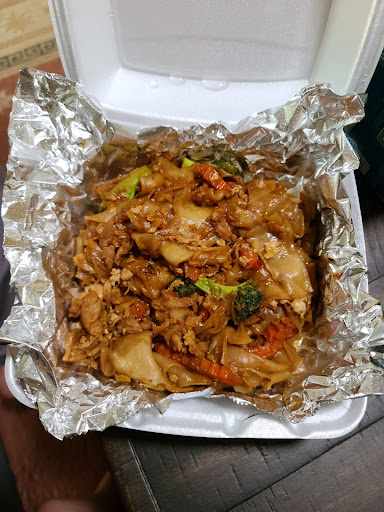The west-wind theater drive-in Is nearby so if you wanted to get thai food while watching or if you got around the area rather early and there isn't any traffic then well this is a neat place to stop by. It isn't the biggest restaurant but seats and tables were decent enough, no squeaking or table tilting. The man behind the register was rather busy but still attentive as he could. Food didn't take too long at all. Appetizers were first and that was great and before you know it the entrees were served and those tasted amazingly as well. If I had a few qualms about it is maybe the location it is at, as we parked and headed towards the entrance had a rather frantic person walk by clutching his bag as though he was about to get robbed speaking obscenities at the person he passed earlier. Don't know what that's about but well maybe that was just a one time occurrence. Overall still a neat...