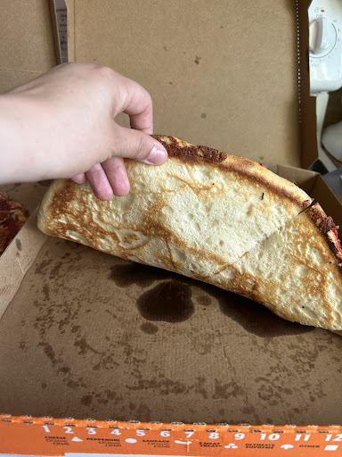 Well, all my other food was nice and cold, we had been there so long it was ridiculous, and I just wanted to leave. The pizza was awful. It was burnt, had a barely even noticeable amount of cheese put on top, the crust looked so limp and thin it was like a wet generic frozen pizza.