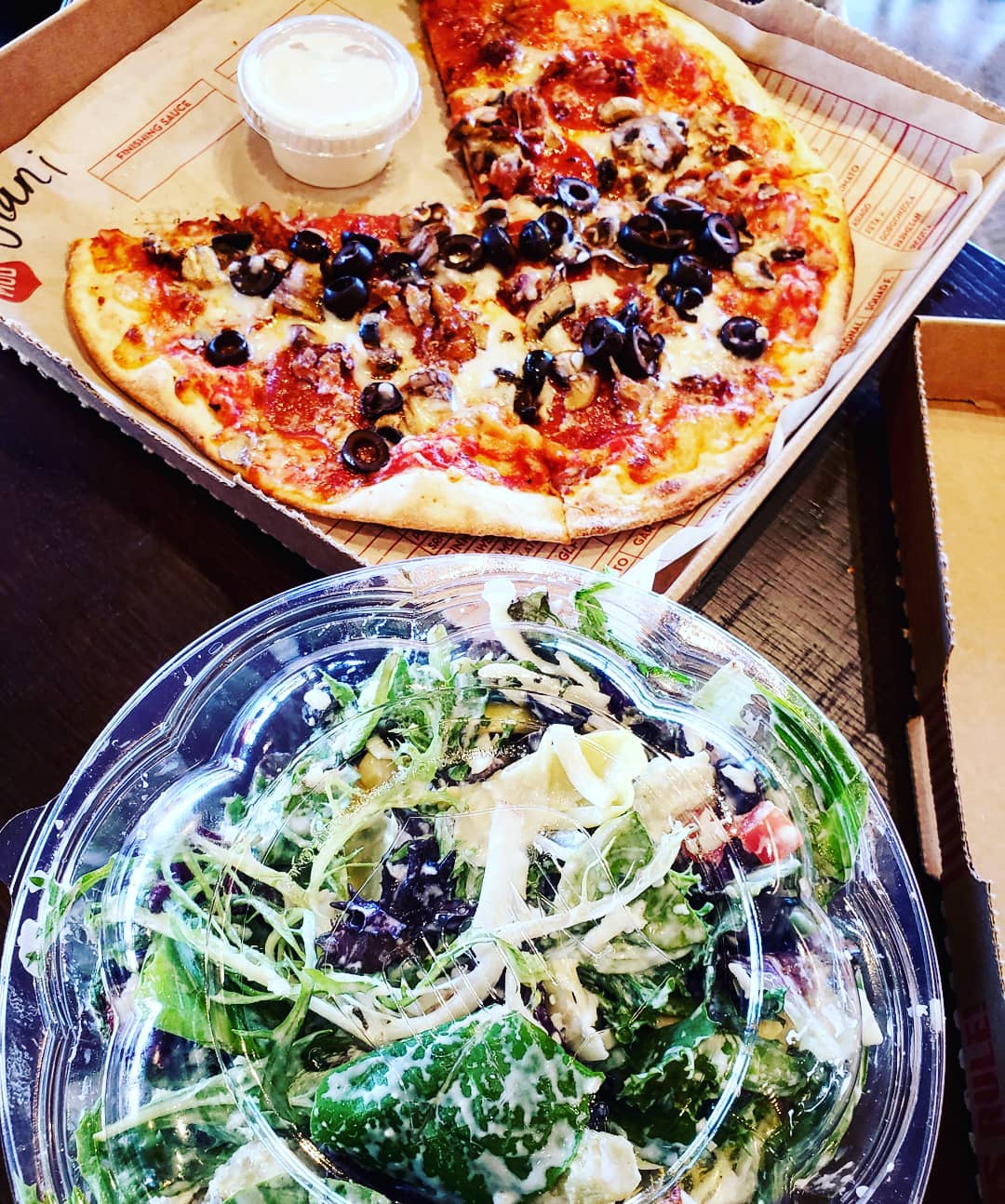 I don't know how good the food actually is because I don't eat salad. I would have liked to try their pizza, it looks amazing. Unfortunately there wasn't enough time in my trip and I had too much food already. It would be nice if one of these opened up in Albuquerque New Mexico. I love fancy Pizza. I hope my bf likes the salad. I will update this review once I get a chance to eat the mod cake I bought to take with me on the plane. The lady was very nice and patient when taking my order. Normally they charge for extras but when I couldn't decide what dressing to get, she gave me a cup of each. Normally places nickel and dime you for every topping you get, but not this time. She even gave me special pricing on the salad since they were out of the topping I wanted. She was so nice and friendly... If I actually lived here- we probably could have been friends. She went so far above and beyond the normal level of "politely doing my job" that you come to expect from the average customer service. Also, the tip prompt starts at 3% and caps out at 10% which is very refreshing given how bad everywhere else is. When your fast food employees already get minimum wage- they don't really need to be tipped at all and the fact that most other places I've been to START at a base of 10 or 15% is ludicrous! So, that's why I definitely give extra praise for MOD Pizza giving its customers some relief from tipping culture. That plus how amazing the girl who helped me was- I felt HAPPY to give her a bigger tip. I do feel kind of bad that I didn't get her name so that I can praise her directly. Unfortunately I'm not in the habit of paying attention to who...