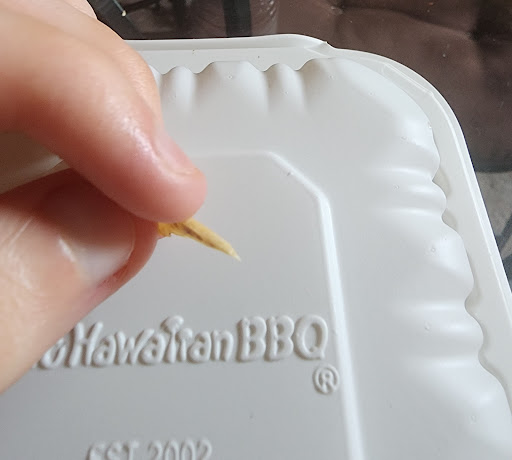 Read moreThis current trip to Ono was horrible. The only chicken and rice item I got this time (Chicken Musubi) was DANGEROUSLY made and served. The first half of it I ate was fine, but less chicken than usual. The 2nd one, my first bite into it there was a very hard bone that could have chipped a person's tooth had they not been as cautious as me. I assumed it was just that bite. So I take another bite, and an extremely SHARP piece of bone slightly stabbed the roof of my mouth near my gums. So I pull it out and spit out the rest of the bite. The last quarter of this Musubi looked safe, so I take another bite, and yet again a very hard, skinny, and inch sized bone was in that bite. This can seriously damage somebody's esophagus/insides as well as their mouth. I'm not sure if this chicken is chopped in house or shipped to them pre-sliced, but this restaurant needs to do better. Pretty unacceptable and makes me not want to spend my money or risk my health...